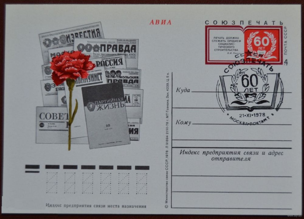 ПК с ОМ СССР 1978 г. 60 лет Союзпечати Спецгашение