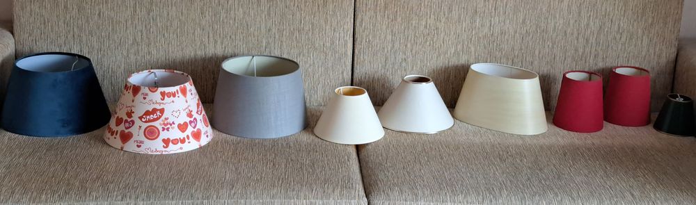 Плафон / абажур ткань, внутренняя поверхность полимер Германия высота 14 см., диаметр основания 23.5 см., диаметр верхней части 8.5 см., имеется приспособление для установки плафона для любого цоколя.