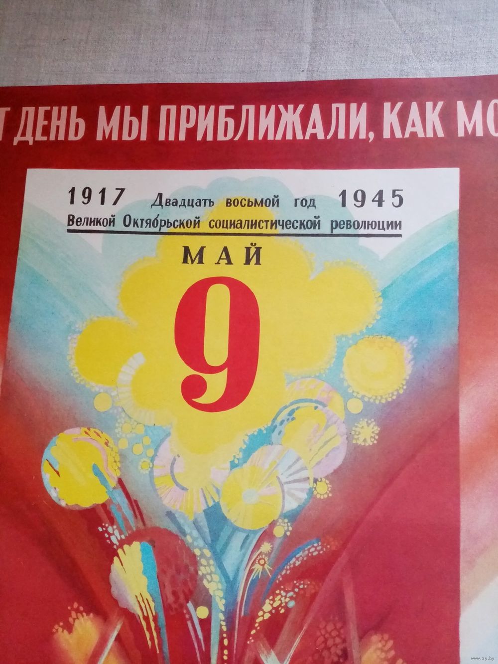 Плакат 9 Мая День Победы 55х43 см худ. А. Чеботарев СССР