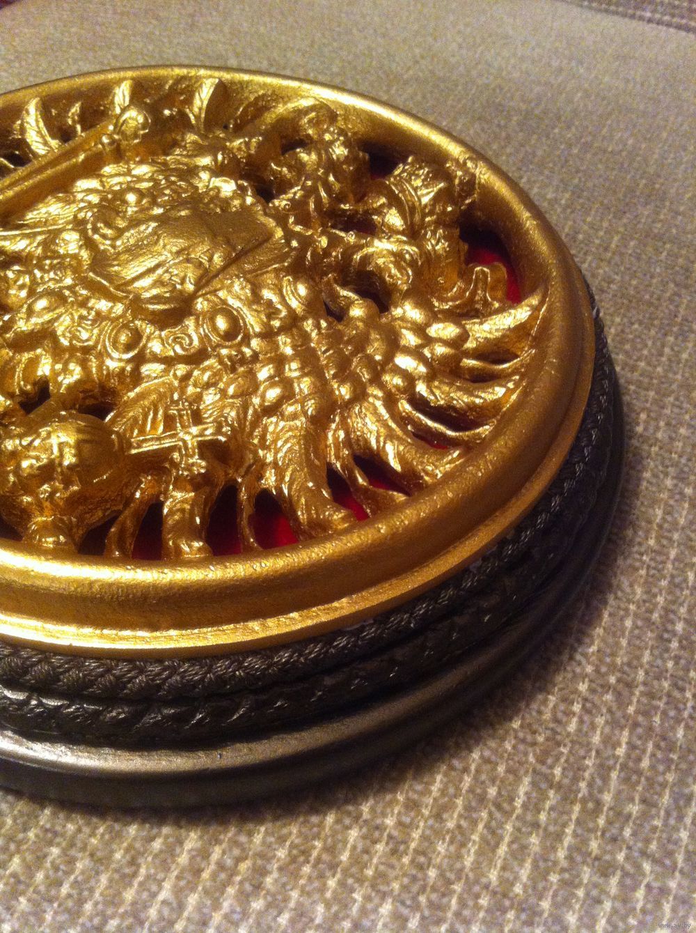Плакетка герб Австро-Венгрской Империи , действующий с 1867 г. по 1918 г. , объёмный , 17х3.5 см , гипс , верёвка , красный бархат , эмали . Из серии реплики мировых шедевров . Всё Белпочтой или самовывоз