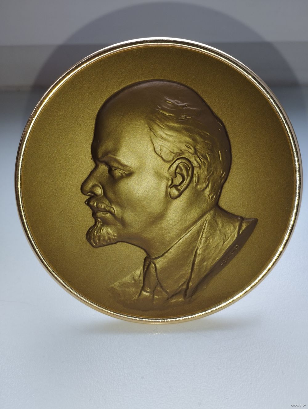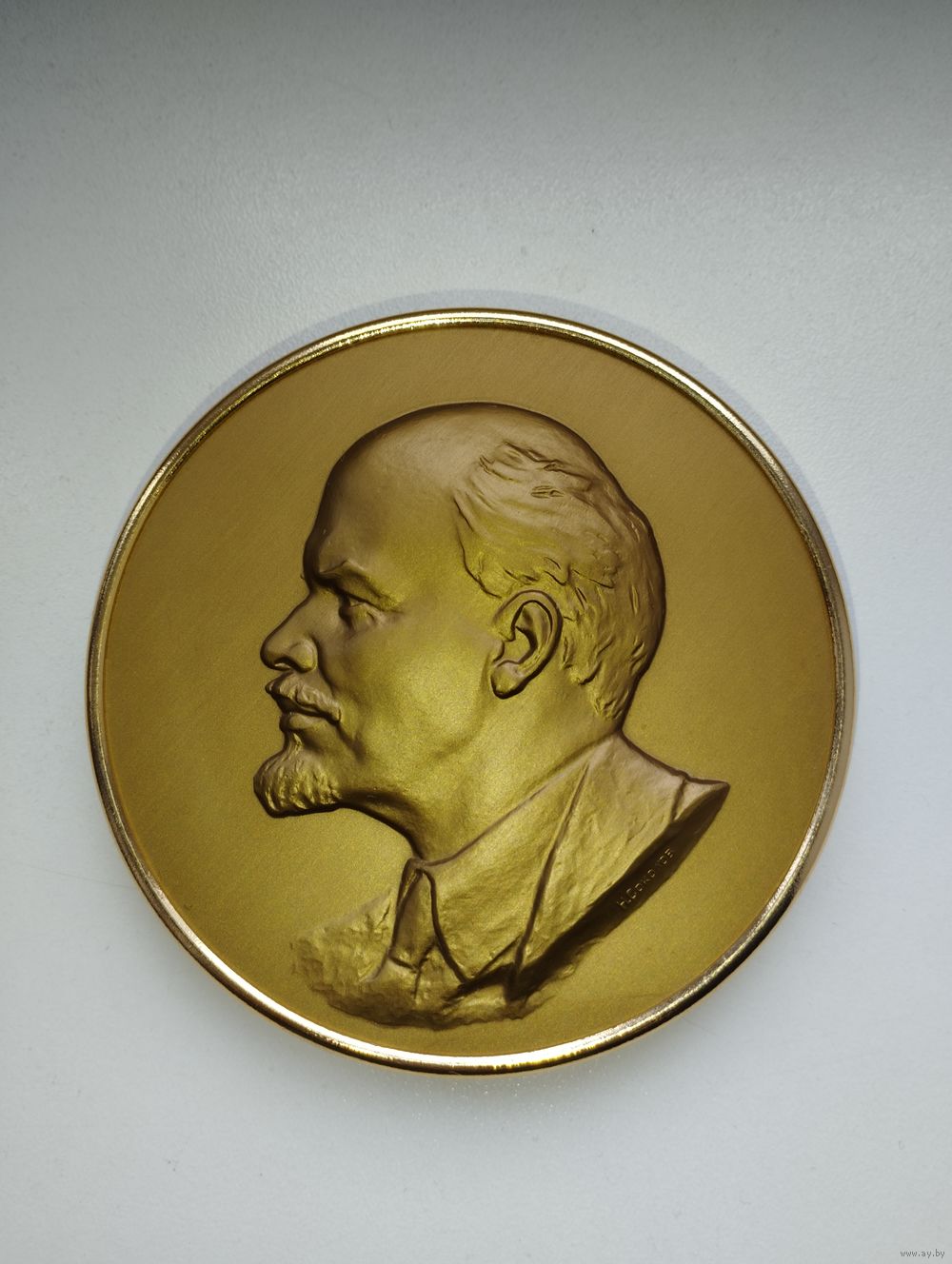 Это алюминиевая плакетка от Ленинградского монетного двора, датируемая 1970-1980 годами. Её диаметр составляет 104 мм, а вес — 250 грамм, при этом она находится в идеальном состоянии без износа. Плакетка выполнена в бронзовом и золотистом цветах.