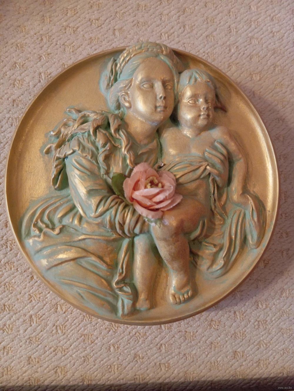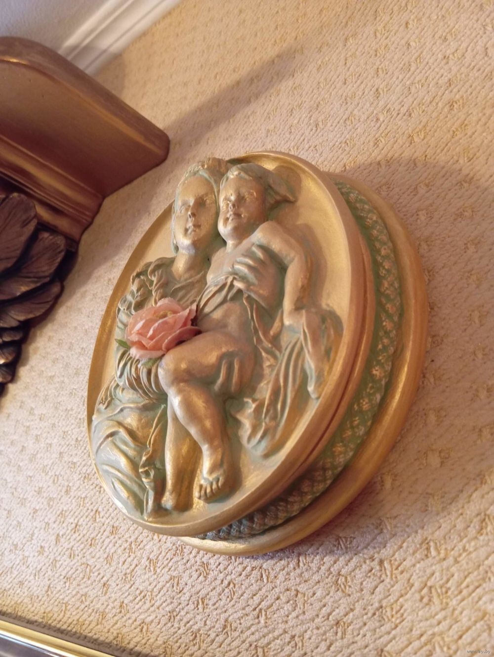 Барельеф-Плакетка ЭОЗЕФИНА С МЛАДЕНЦЕМ НАПОЛЕОНОМ II , 17х4 см , гипс , перламутр , акрил , искусственный цветок . Из серии реплики мировых шедевров . Всё Белпочтой или самовывоз .