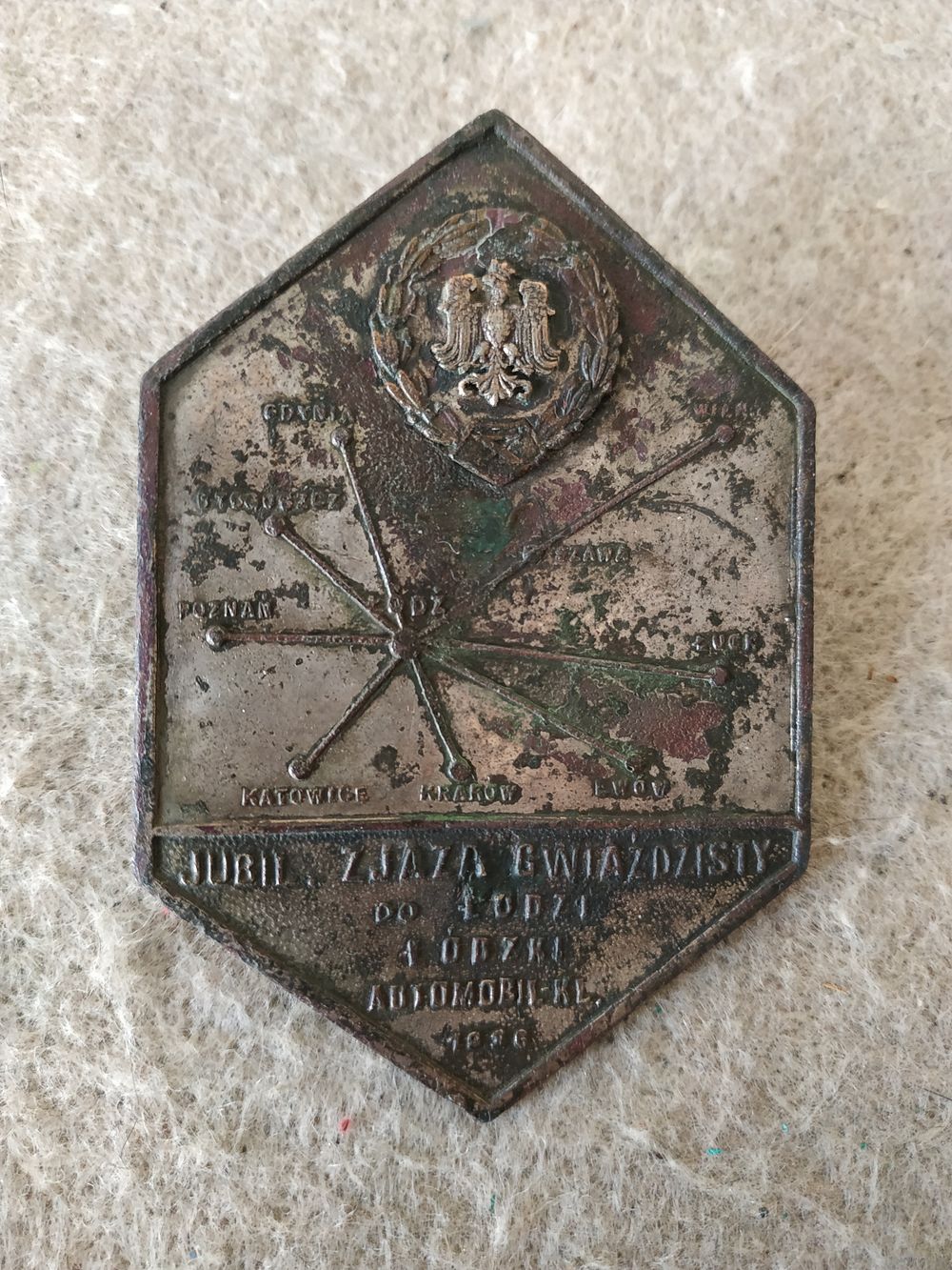 Плакетка-знак "Х юбилейное "Звездное ралли" в город Лодзь". Польша, Лодзкий клуб автомобилистов, 1936 год.