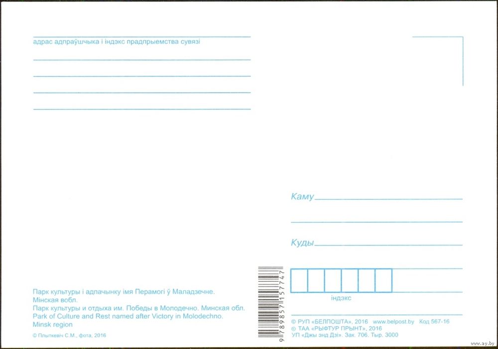 Оплата почтовым переводом. На карту БЕЛАРУСБАНКА или БЕЛИНВЕСТБАНКА. Пересылка ТОЛЬКО Заказными или Ценными отправлениями исходя из почтовых тарифов Белпочты. С Европочтой не работаю.