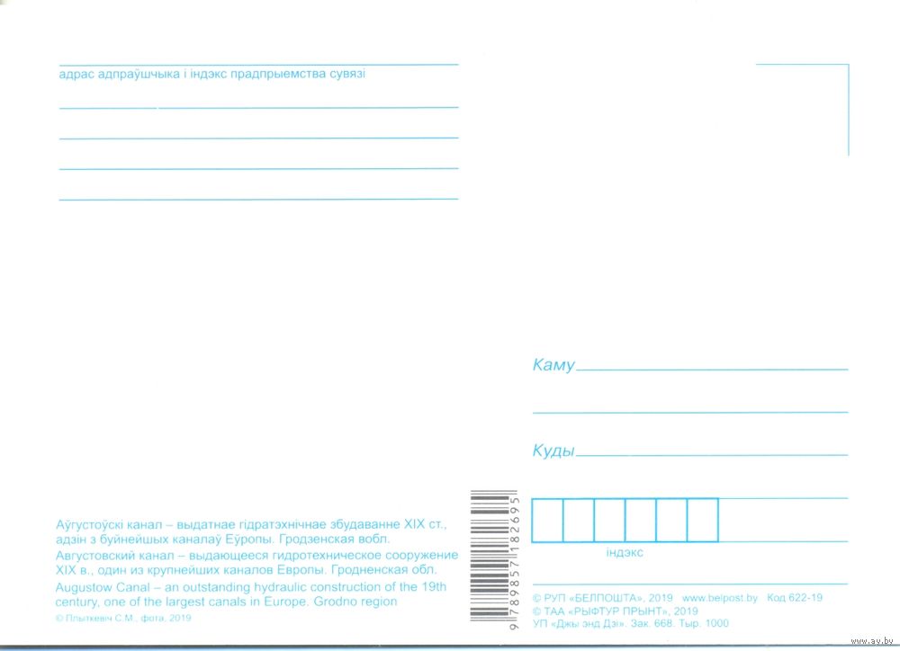 Планета Беларусь, Августовский канал, 2019, тираж 1000 экз. Передача в Витебске при личной встрече возле ратуши. Пересылка в другой город за счёт покупателя по тарифам Белпочты либо Европочты после 100% предоплаты.