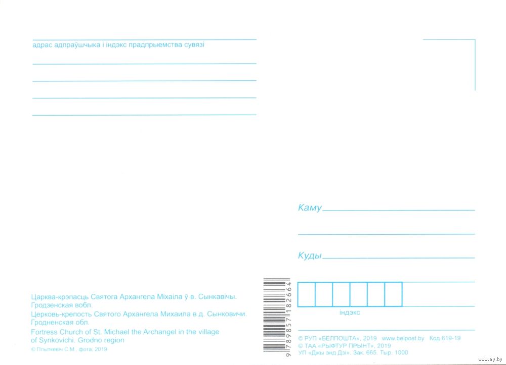 Планета Беларусь, Церковь Святого Архангела Михаила, Сынковичи, 2019, тираж 1000 экз. Передача в Витебске при личной встрече возле ратуши. Пересылка в другой город за счёт покупателя по тарифам Белпочты либо Европочты после 100% предоплаты.