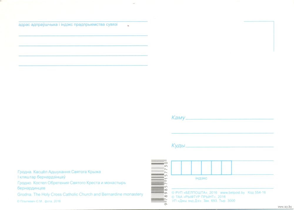 Планета Беларусь, Гродно. Костёл обретения Святого Креста, 2019, тираж 3000 экз.. Передача в Витебске при личной встрече возле ратуши. Пересылка в другой город за счёт покупателя по тарифам Белпочты либо Европочты после 100% предоплаты.