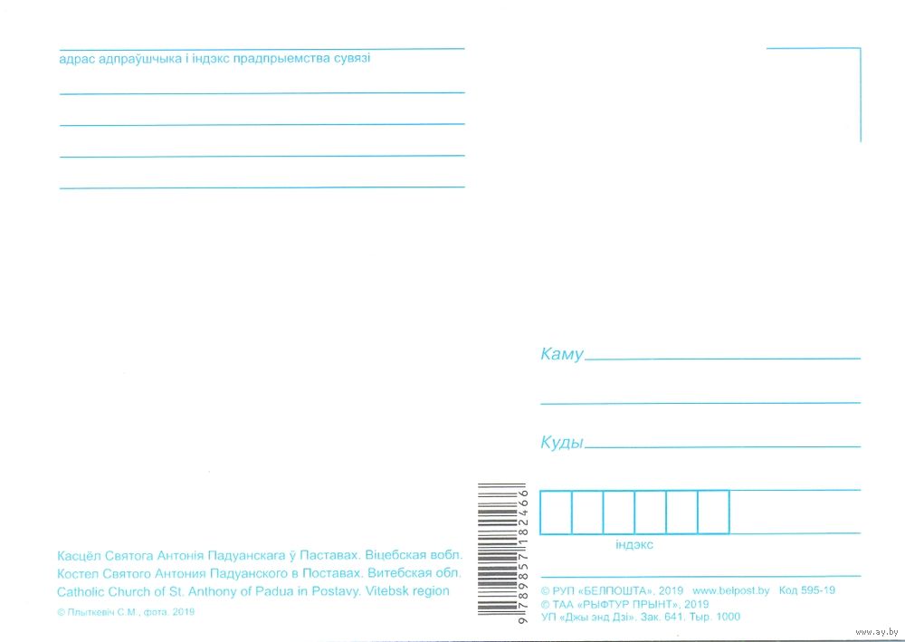 Планета Беларусь, костёл Антония Падуанского, Поставы, 2019, тираж 1000 экз. Передача в Витебске при личной встрече возле ратуши. Пересылка в другой город за счёт покупателя по тарифам Белпочты либо Европочты после 100% предоплаты.