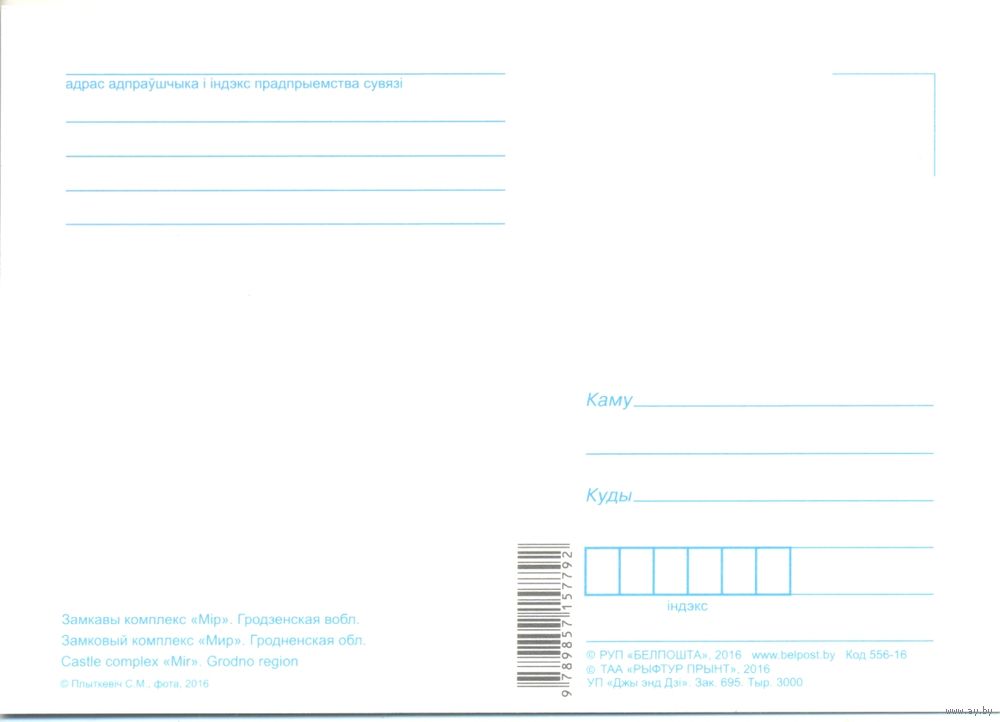 Планета Беларусь, Мирский замок, тип 1, 2016, тираж 3000 экз.. Передача в Витебске при личной встрече возле ратуши. Пересылка в другой город за счёт покупателя по тарифам Белпочты либо Европочты после 100% предоплаты.