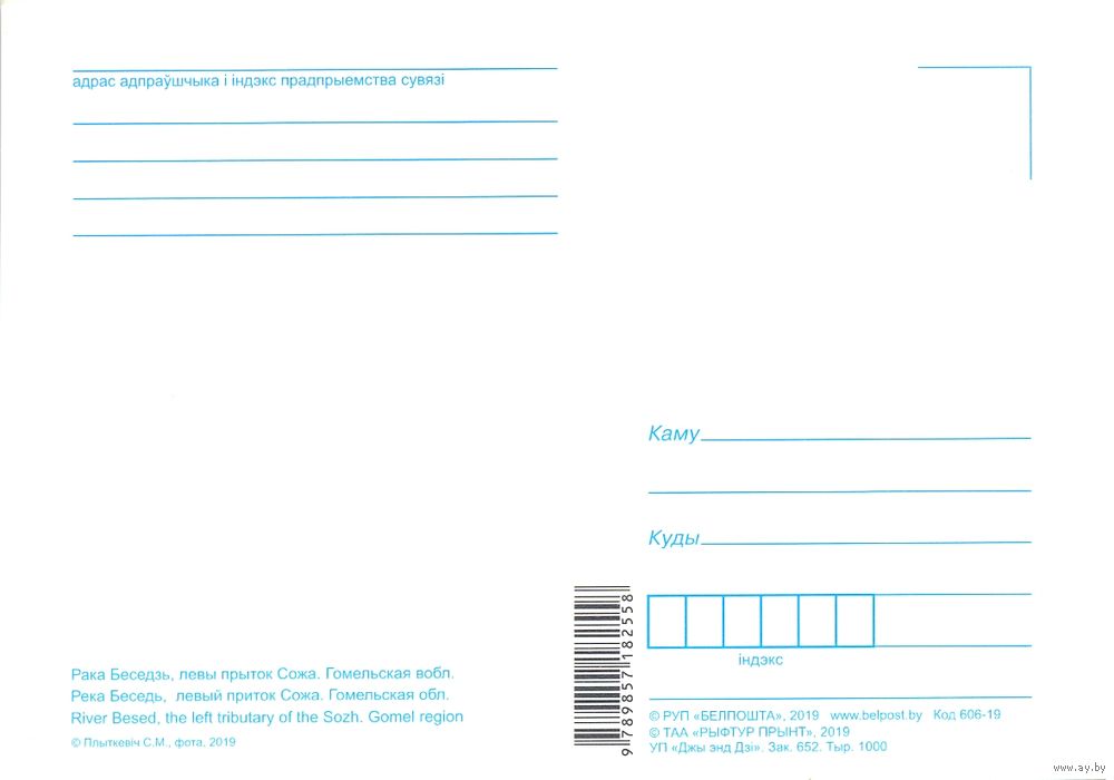 Планета Беларусь, река Беседь, левый приток Сожа, 2019, тираж 1000 экз. Передача в Витебске при личной встрече возле ратуши. Пересылка в другой город за счёт покупателя по тарифам Белпочты либо Европочты после 100% предоплаты.