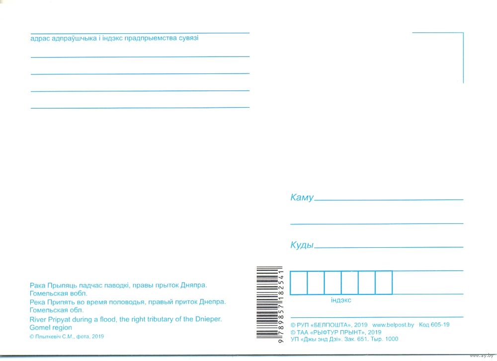 Планета Беларусь, река Припять, правый приток Днепра, 2019, тираж 1000 экз. Передача в Витебске при личной встрече возле ратуши. Пересылка в другой город за счёт покупателя по тарифам Белпочты либо Европочты после 100% предоплаты.