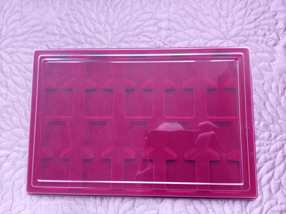Сверху прозрачная пластиковая крышка, снизу черное пластиковое основание.