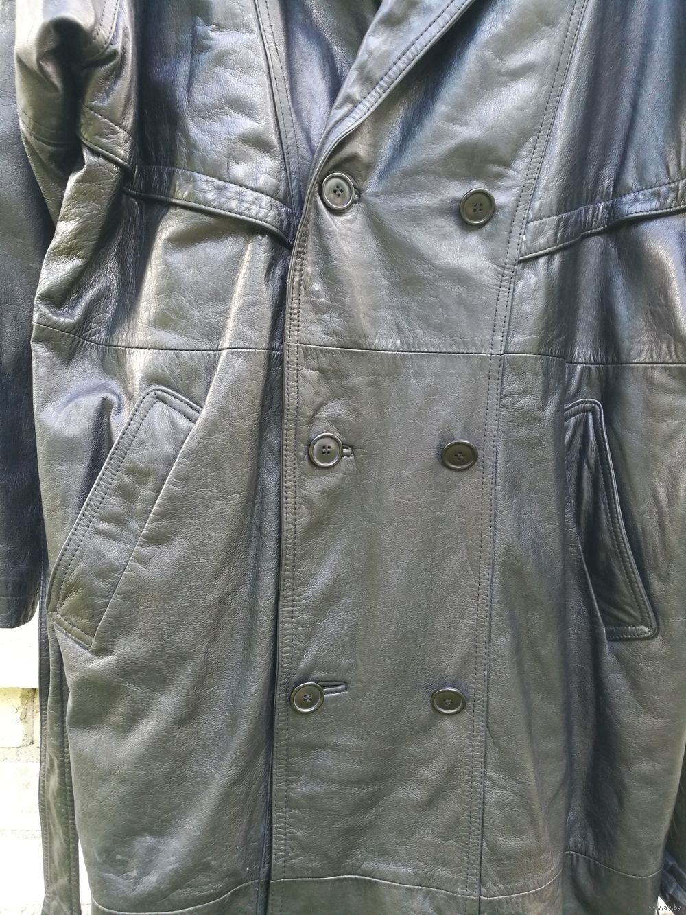 Мягчайшая кожа, на двухслойной стёганой подкладке. Рукав реглан. Сзади шлица. Есть пояс. Большие внешние карманы и два внутренних.