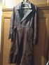 Искусственно состаренный винтажный кожаный плащ коричневого цвета. Унисекс. Есть недостатки - потертости, не хватает 1 кнопки, карманы - подкладка порвана.