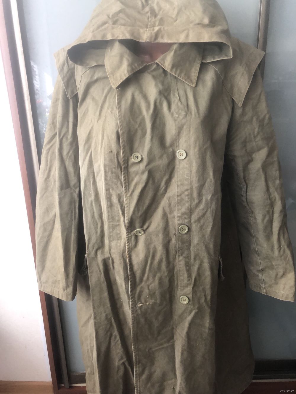 Особенности кроя: Классический двубортный фасон, глубокий капюшон, два больших накладных кармана. Оригинальные пуговицы на месте, пришиты по-родному.