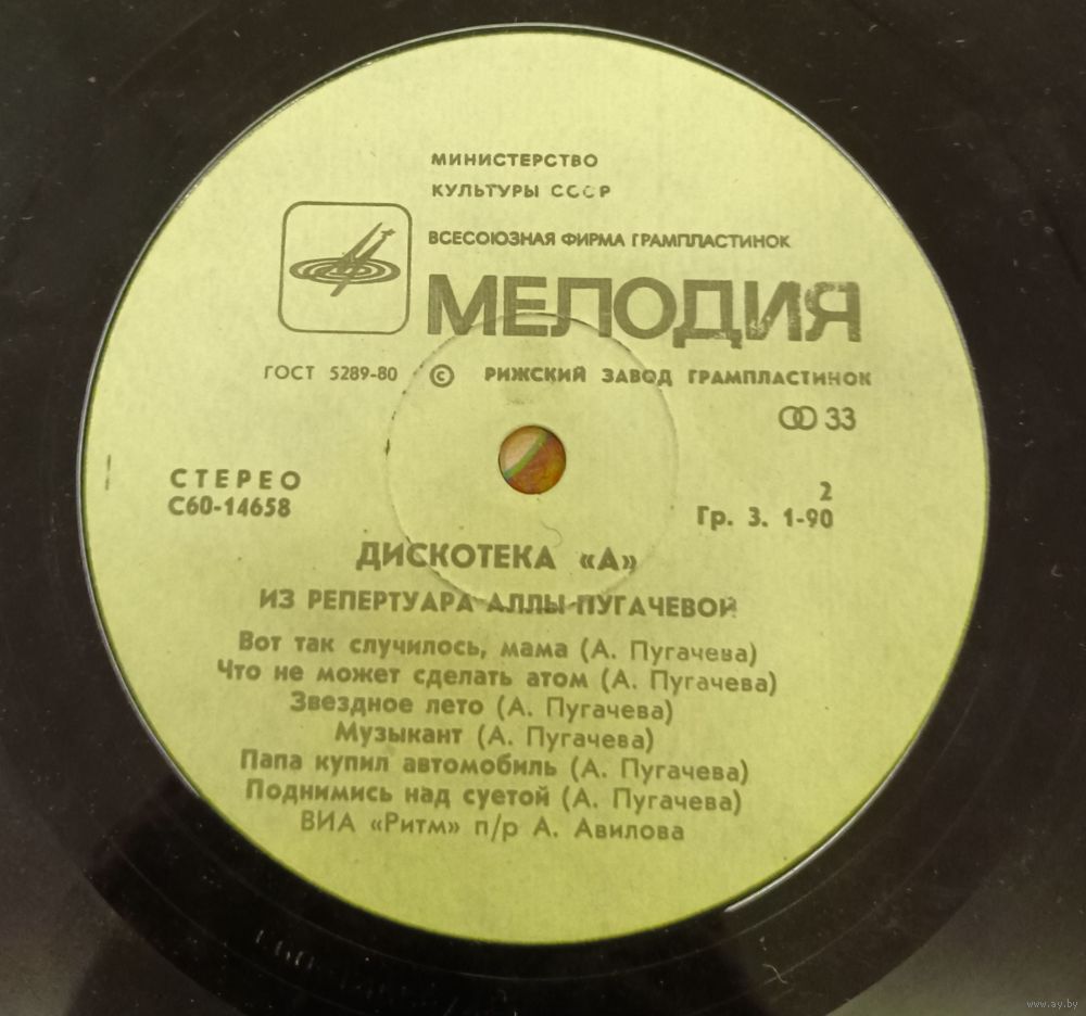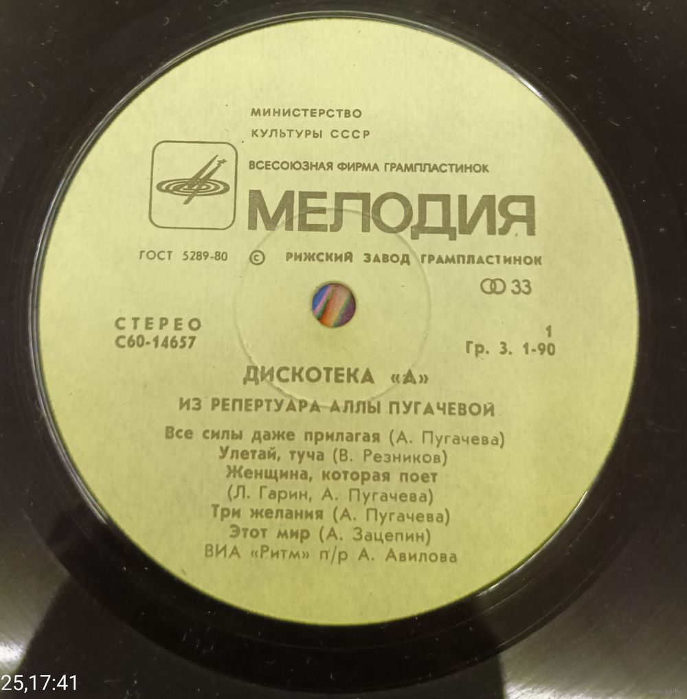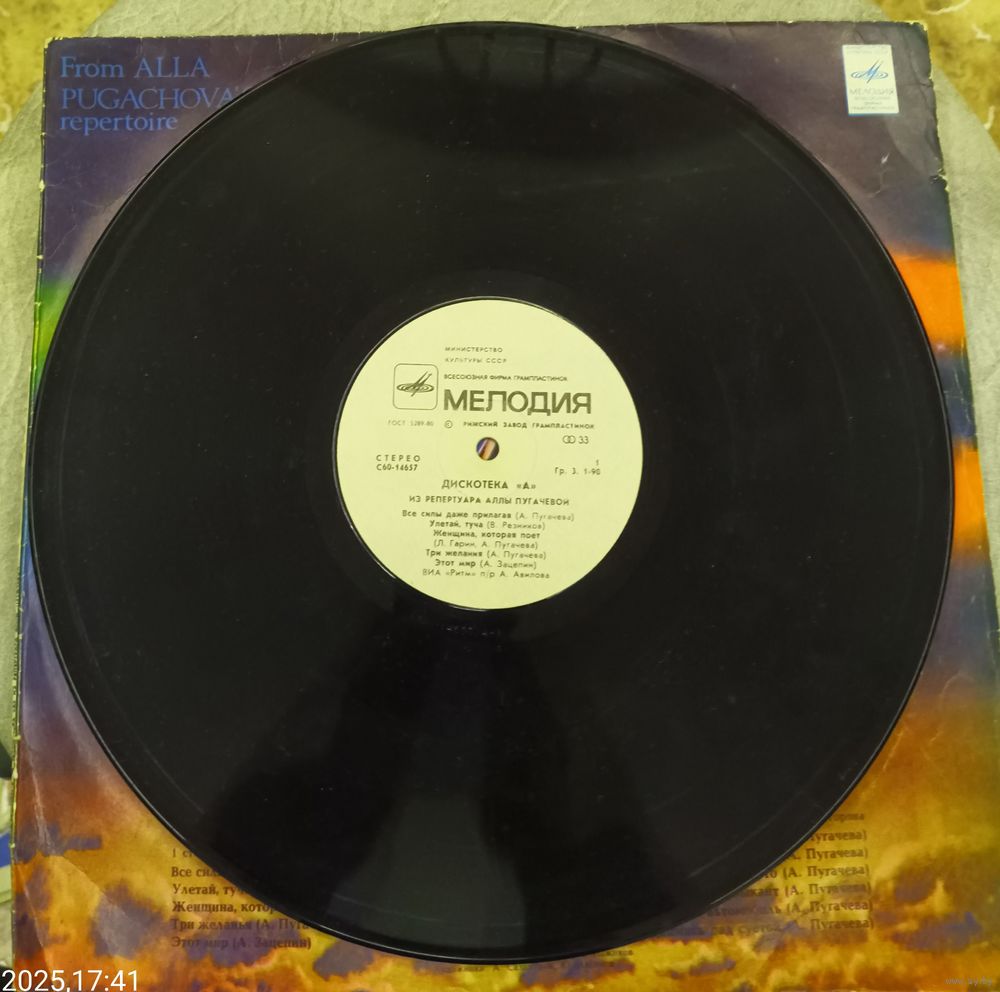Пластинка .Дискотека "А" из репертуара Аллы Пугачевой.