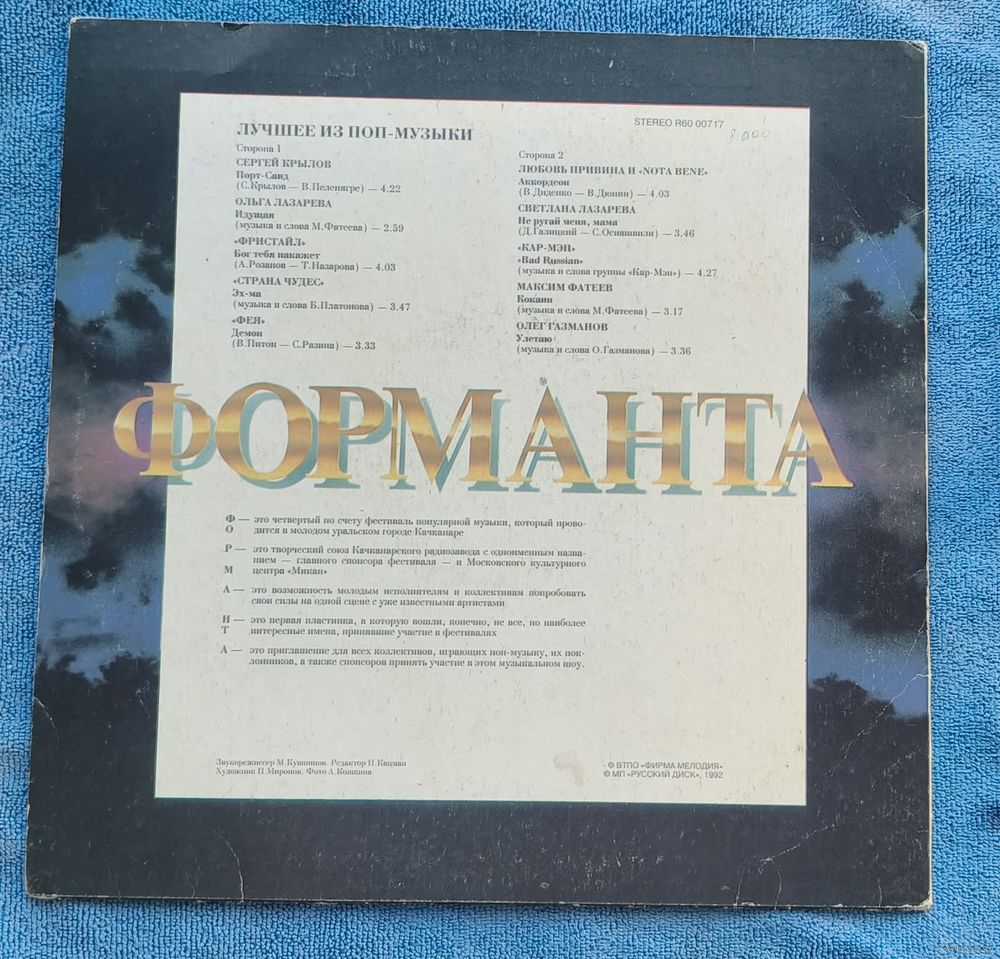 Пластинка Форманта. Лучшее Из Поп-Музыки 1992