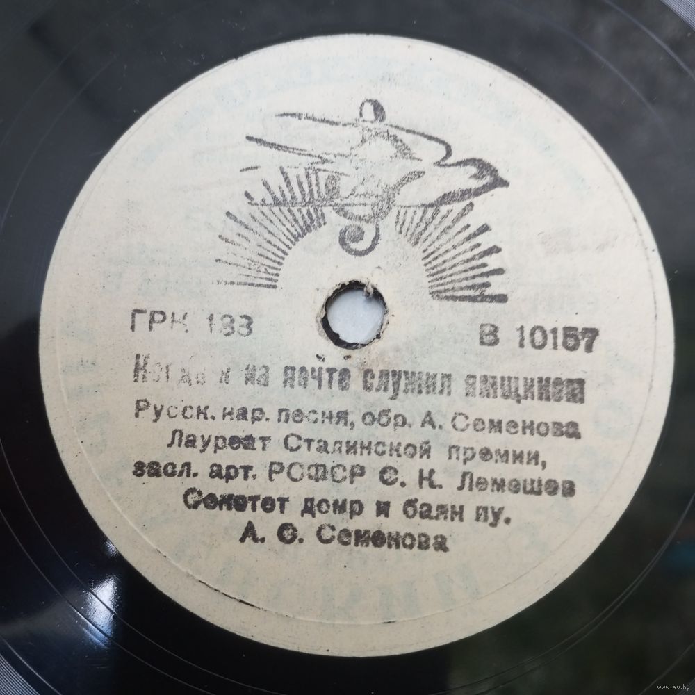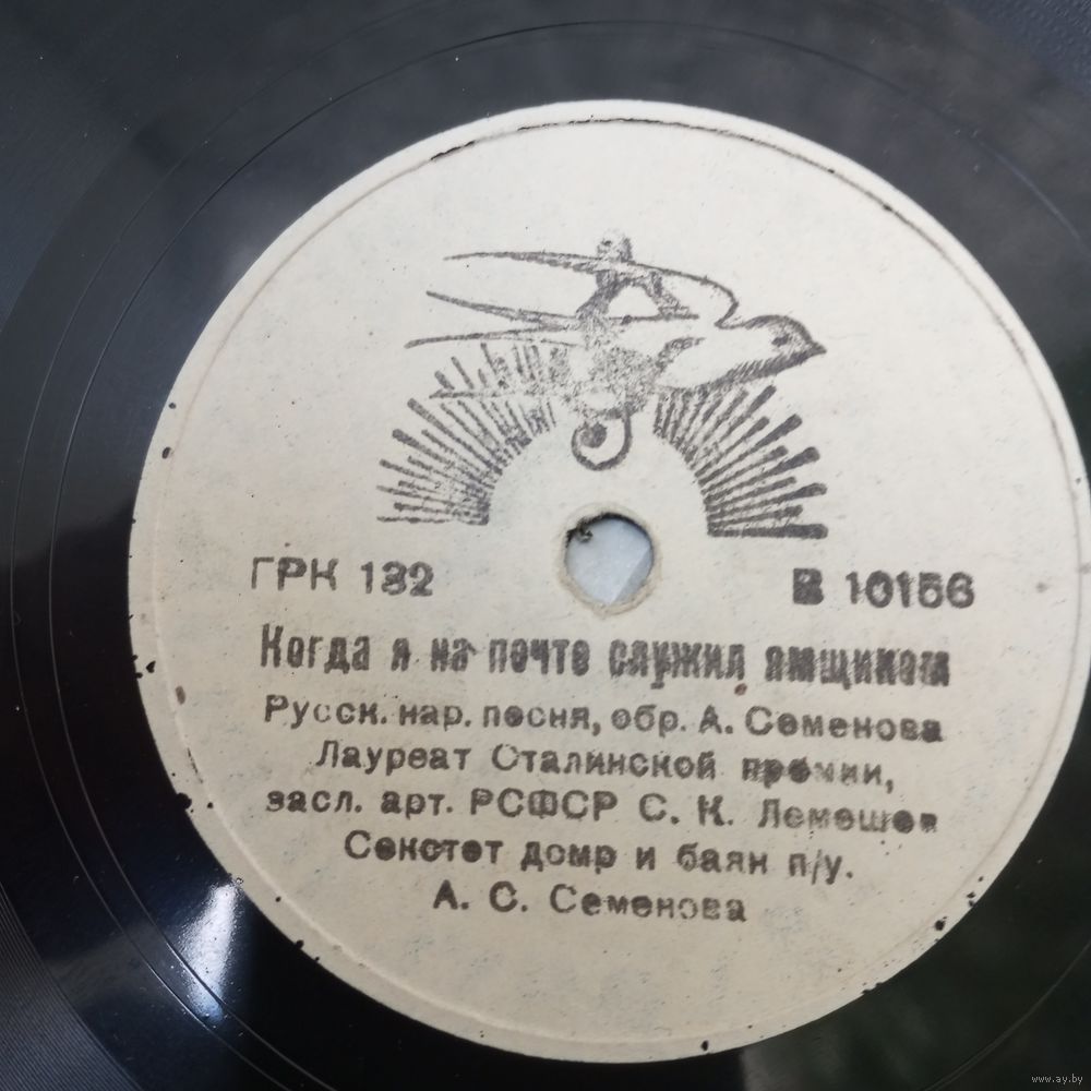 Пластинка патефонная (10"), довоенная - С.Я. Лемешев - Когда я на почте служил ямщиком - Апрелевский з-д