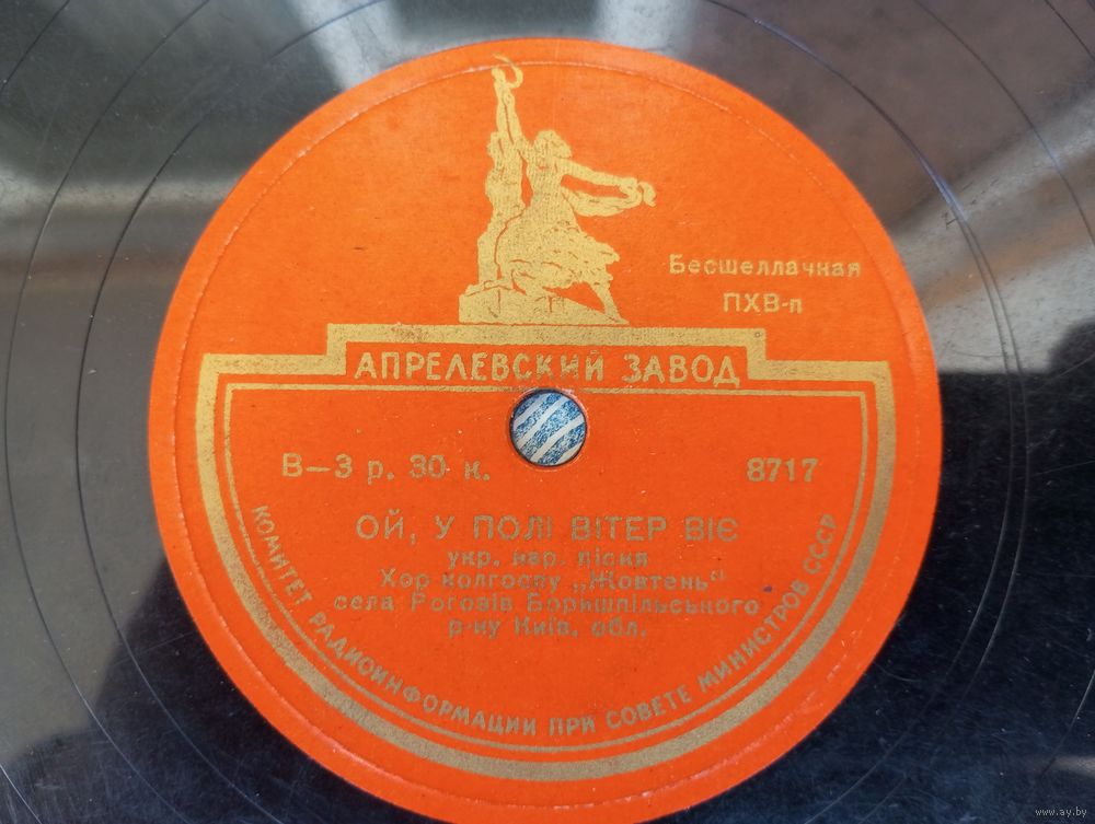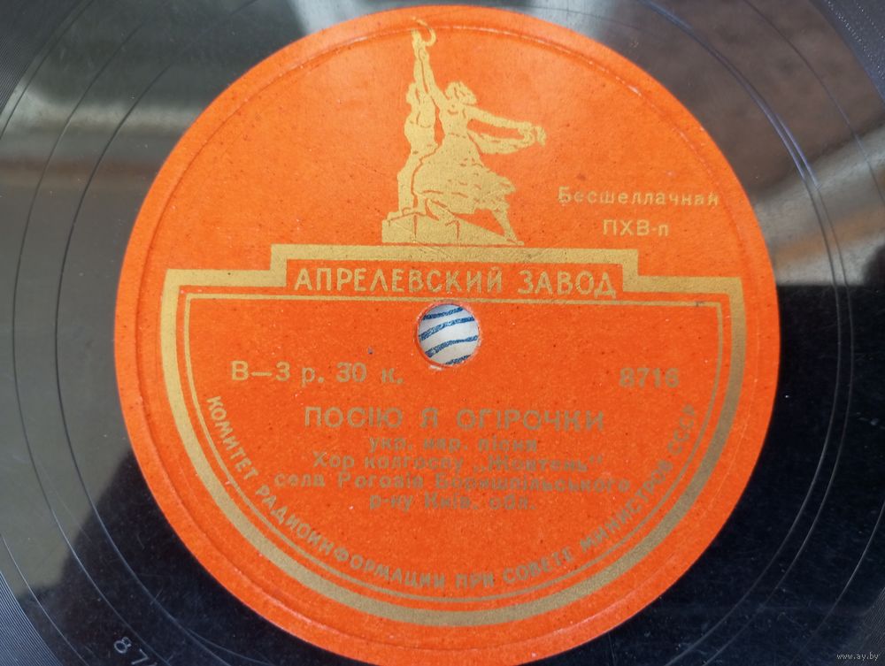 Пластинка патефонная (10") - Хор колхоза "Жовтень" - Посію я огірочки / Ой, у полі вітер віэ - АЗГ