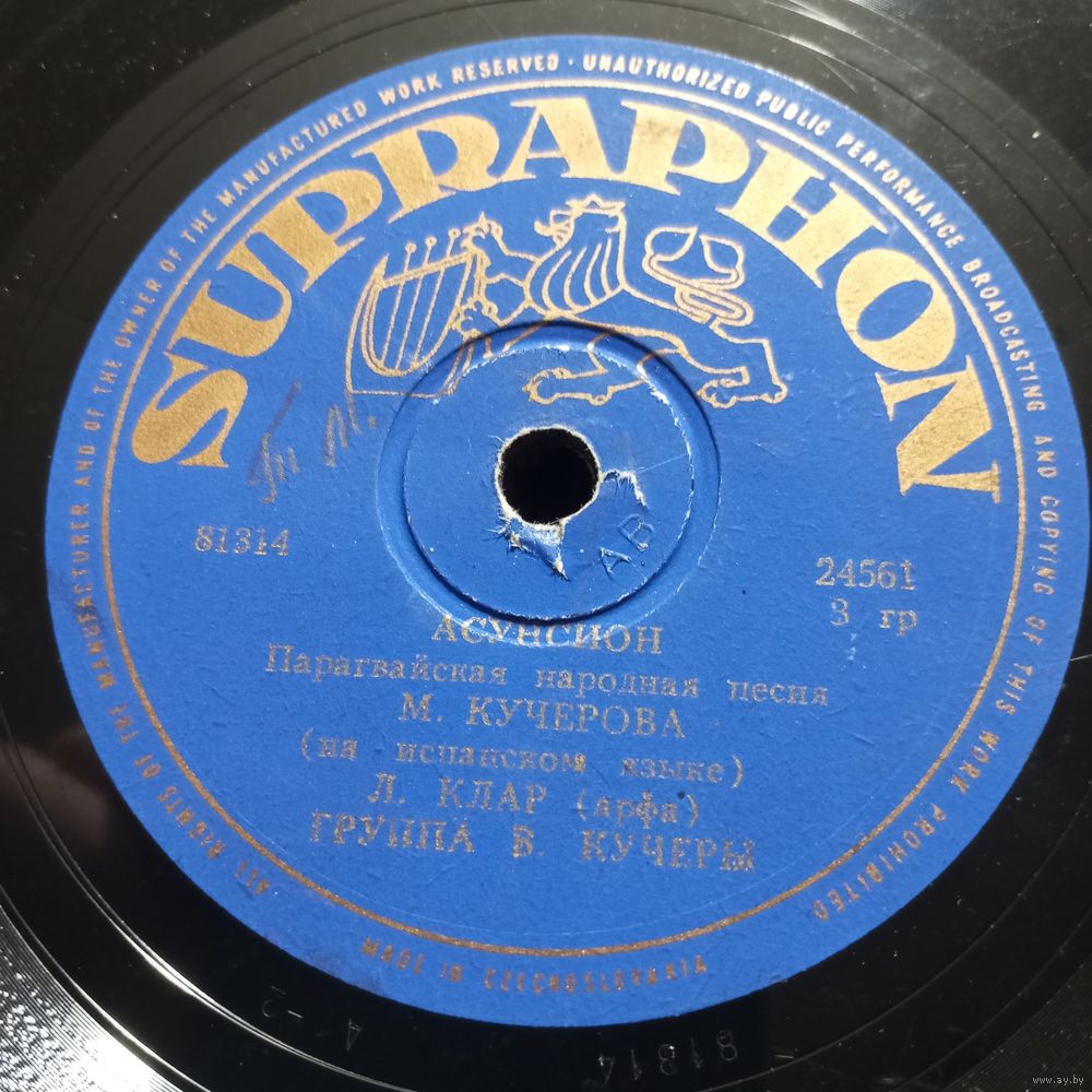 Пластинка патефонная (10") - М. Кучерова, группа В. Кучеры - Трепа на Когиеро / Асунсион - Supraphon