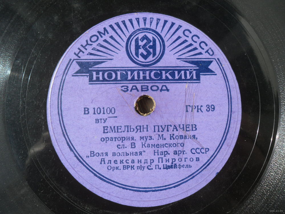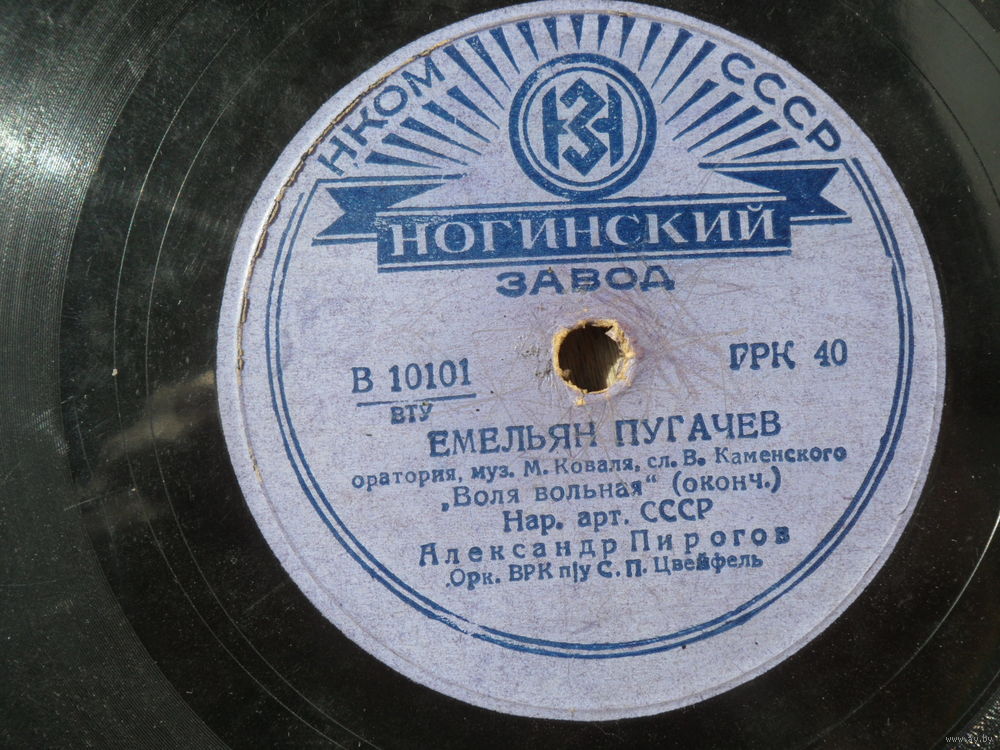 Пластинка патефонная довоенная - А. Пирогов - Оратория Емельян Пугачев. Воля вольная - Ногинский з-д, 1940 г.