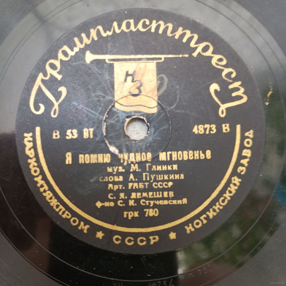 Пластинка патефонная довоенная - С.Я. Лемешев - Я помню чудное мгновенье. Редеет облаков летучая гряда - Ногинский з-д
