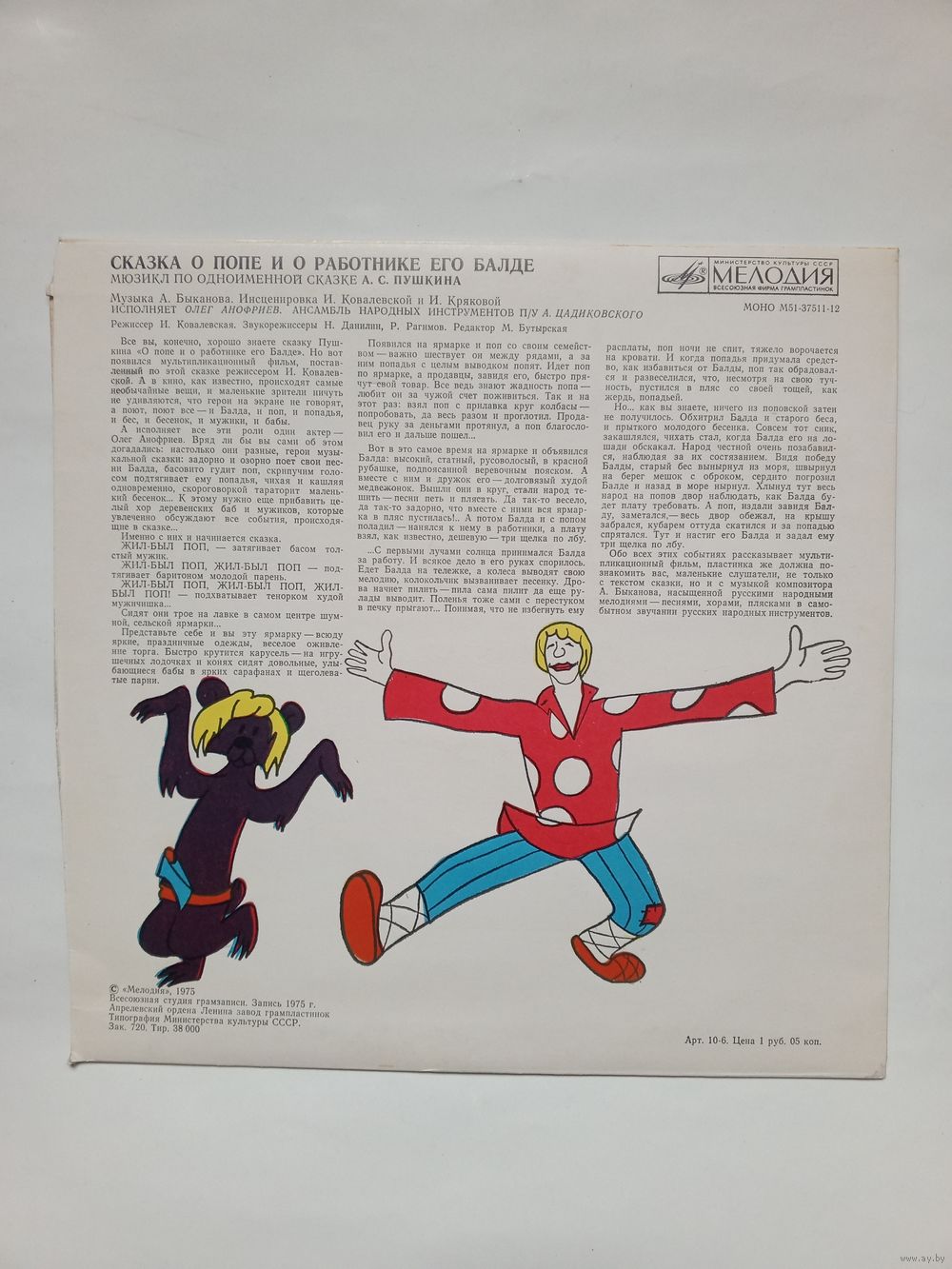 Пластинка Сказка о попе и работнике его Балде