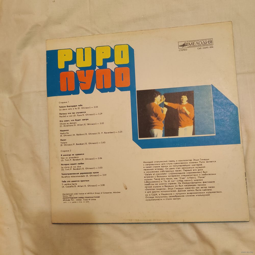 Данная пластинка является сборником песен Пупо, выпущенным в Советском Союзе.