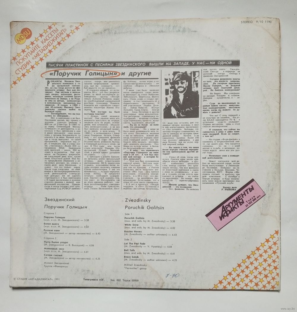 Пластинка Звездинский - Поручик Голицын