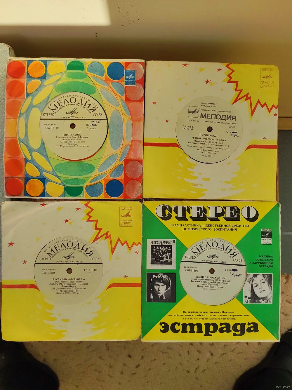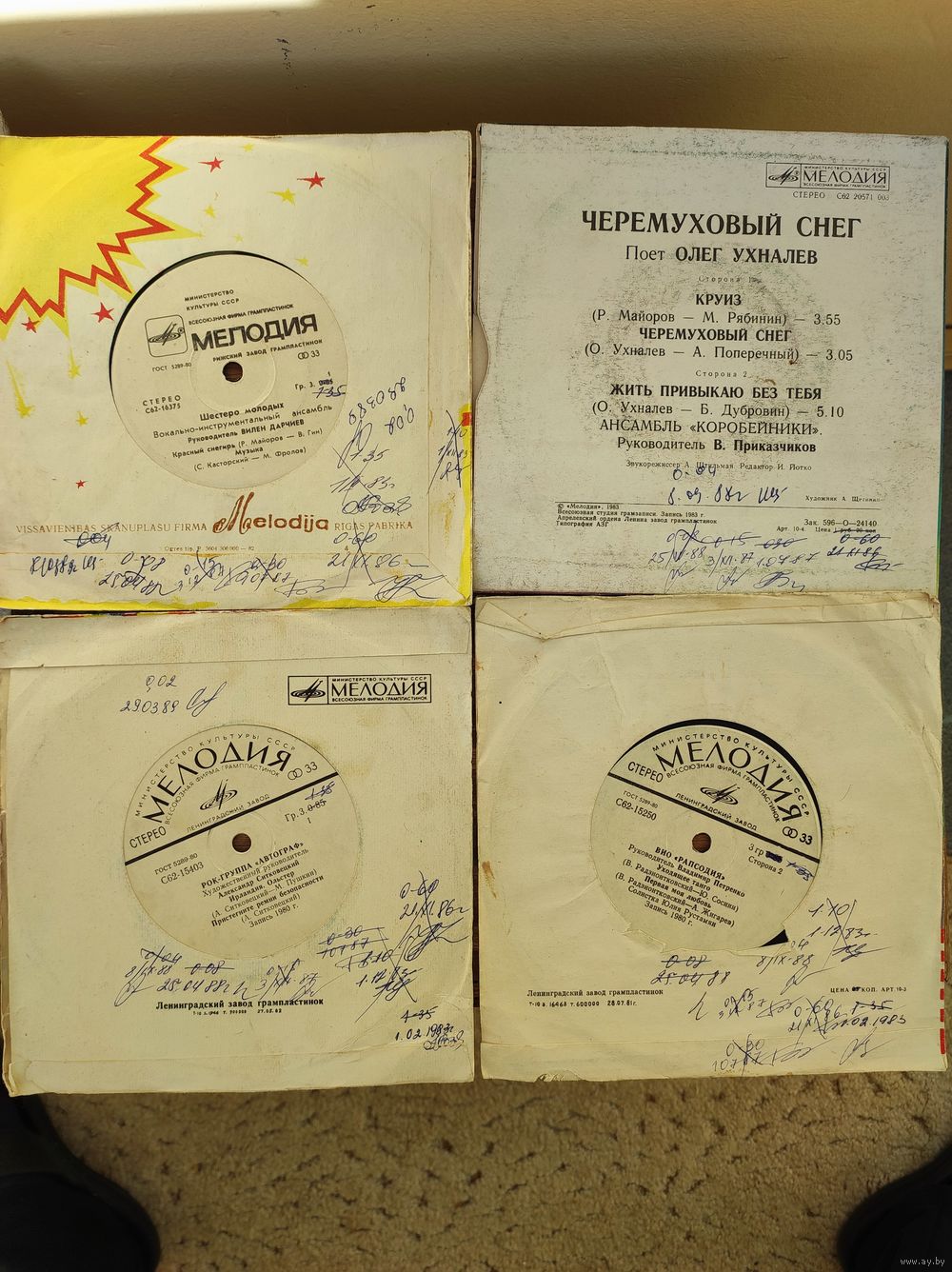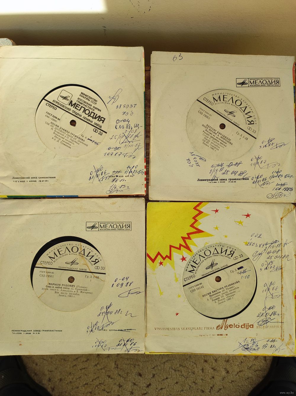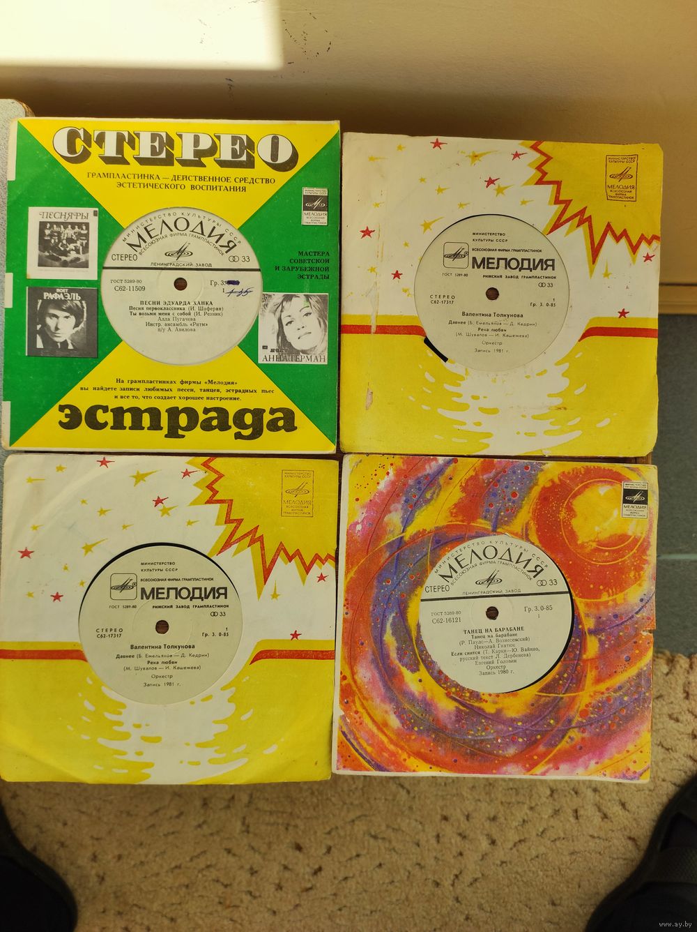 ПЛАСТИНКИ МАЛЫЕ (17.5 СМ) НЕ ИГРАННЫЕ С ИСТОРИЕЙ 20 ШТУК ОДНИМ ЛОТОМ 30 РУБЛЕЙ.