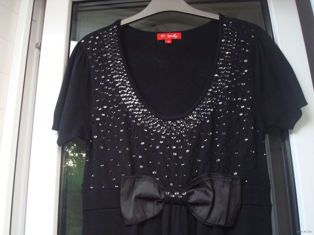 На кокетке платья - нежный узор из черных страз Кокетка заканчивается под грудью, здесь и прикреплен большой шелковый черный бант. Женственно и стильно.