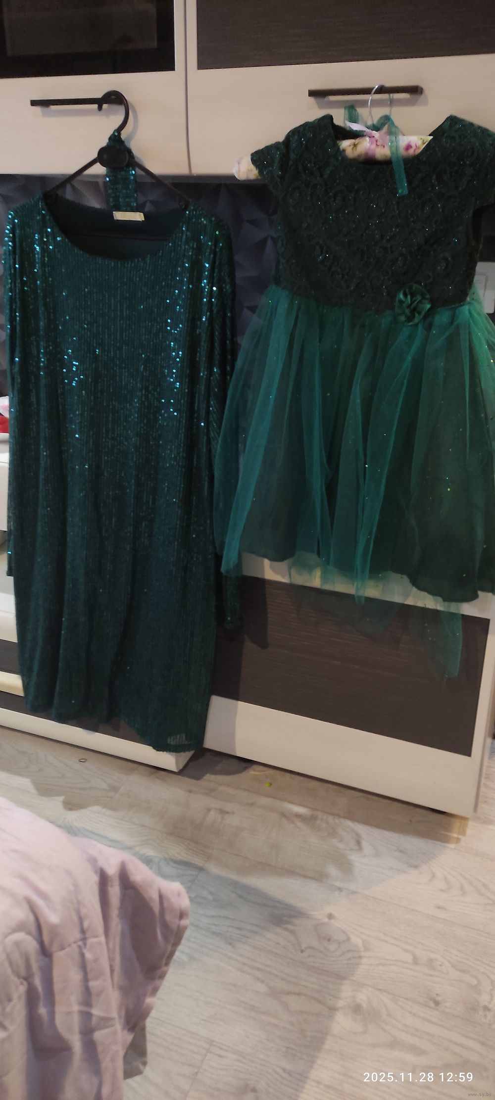 Шикарный комплект,цвет, изготовление самих платьев,Мама размер L,также подойдёт и на М,т.к на поясе,девочка-размер 32.Одевались один раз на фотосессию.Подойдет на утренник, фотосессию. Корпоратив.) Находится на Колесникова 26