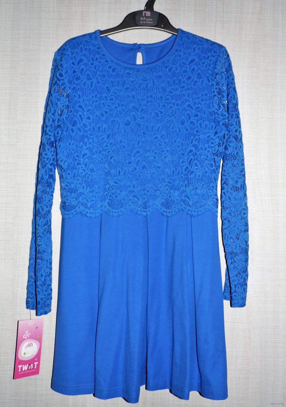 Платье новое, производство "Калинка". Рост 140, ОГ 22, ОТ 63 Длина по середине спинки 70см, ширина в плечах 33см, ширина подмышками 37см, длина рукава от плеча 52см. Верх - эластичное кружево.