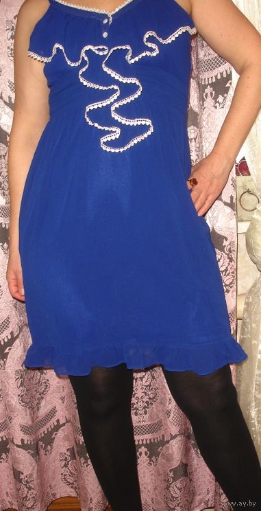 Платье сарафан 46 марк М Ширина в груди 42 см,талия 39 см,бёдра 53 см.Шлейка максимально 18 см,Длинна по спинке 69 см.
