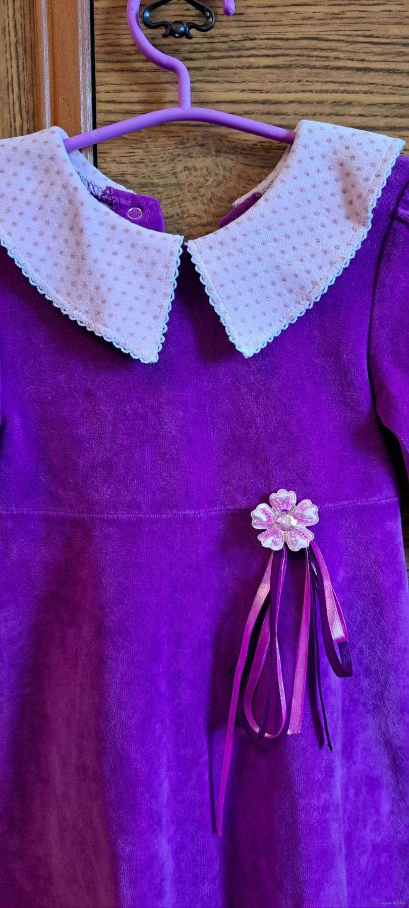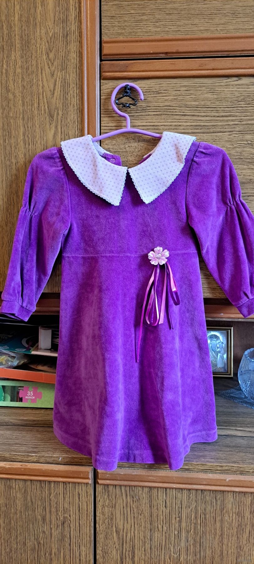 Платье сиреневое с воротником, р.116-122, б.у на 5-6лет.