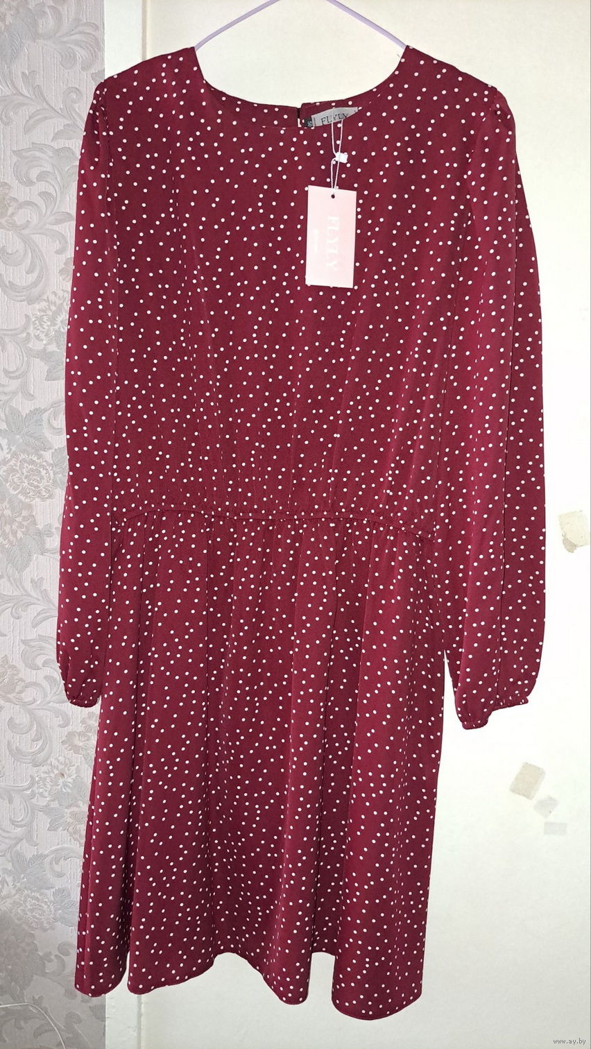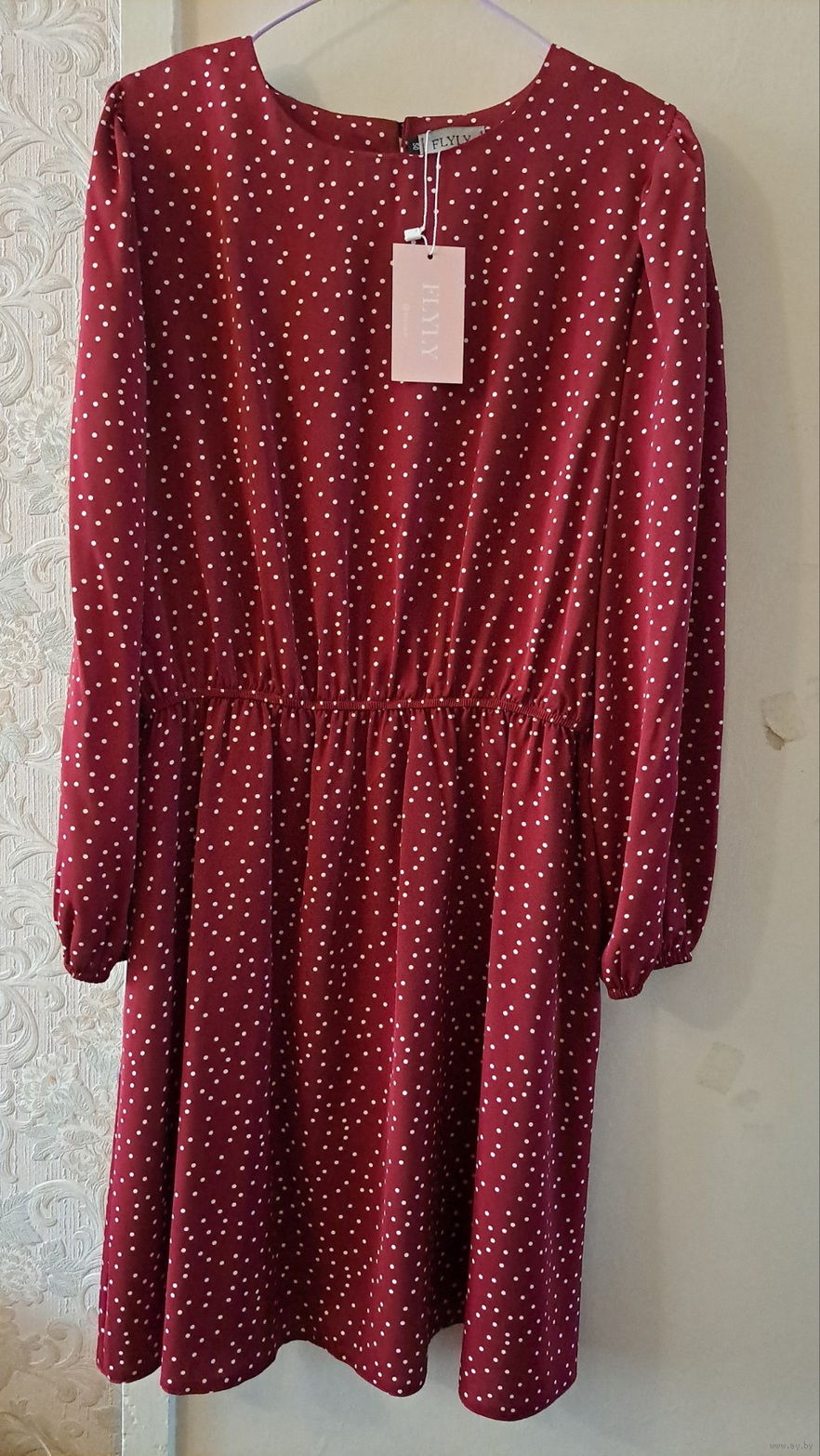 Платье в горошек вечернее, бордо, р.50-52, новое.