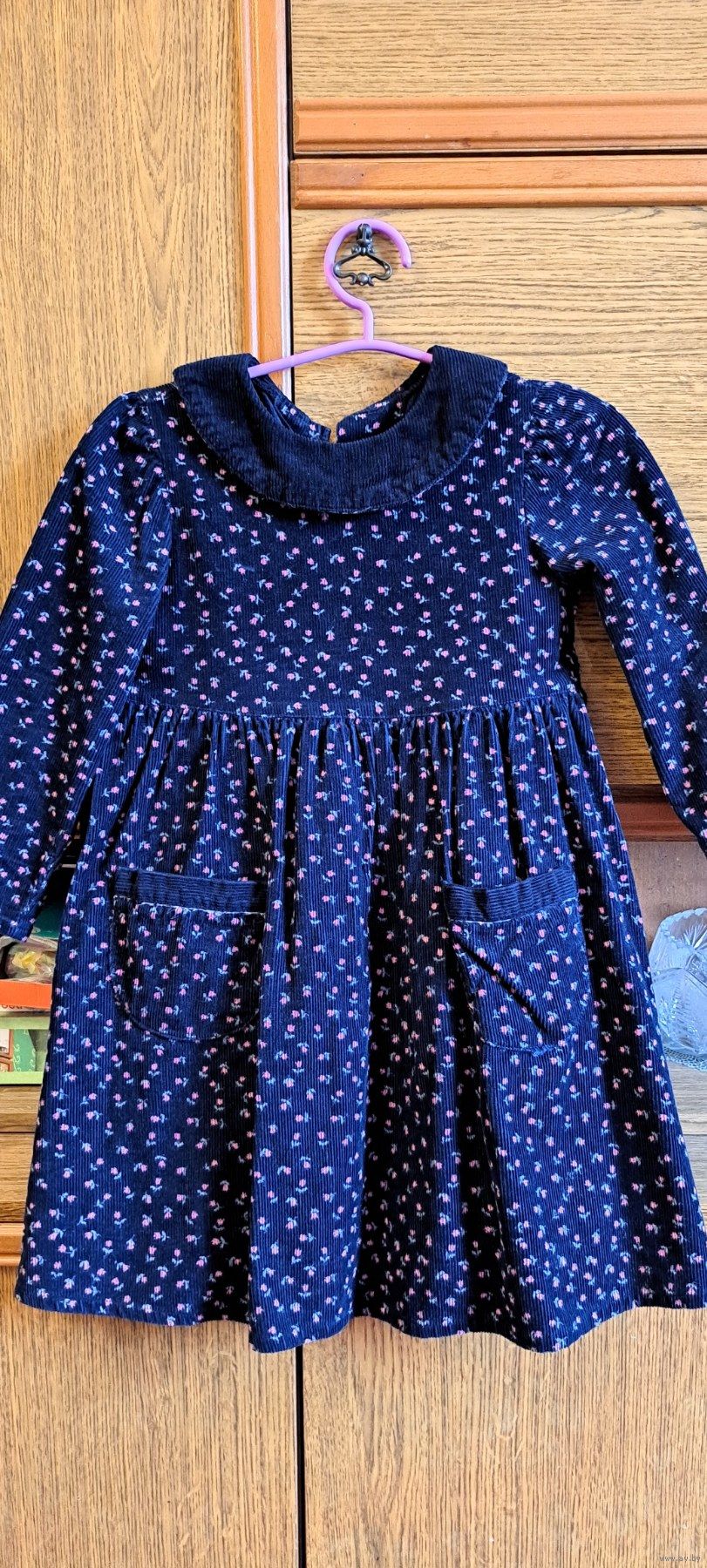 Платье вельветовое синее, р.116-122, б.у на 5-6лет.