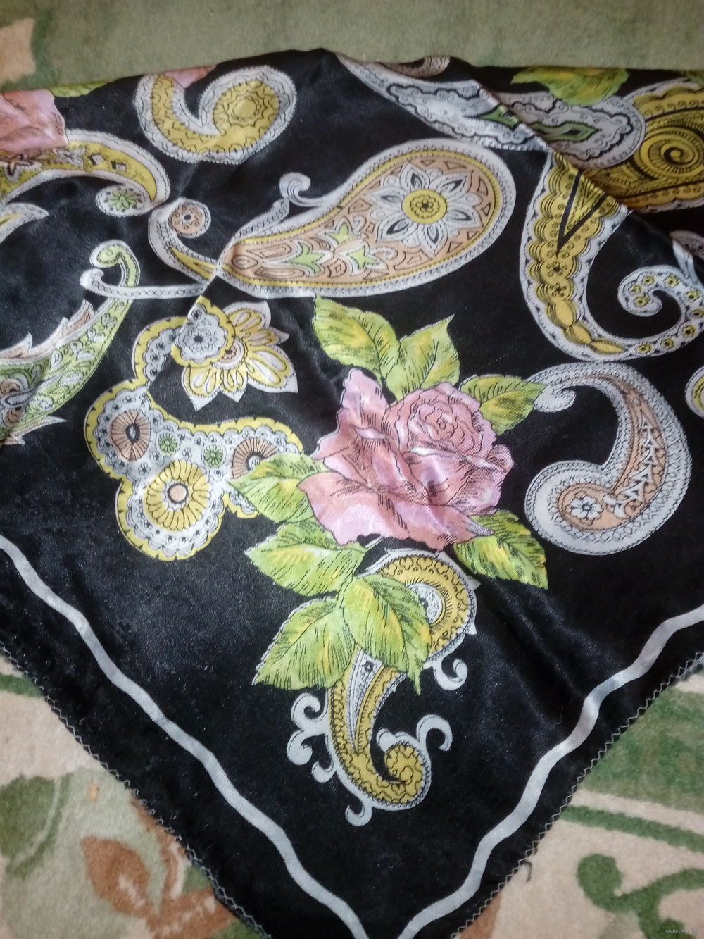 ПЛАТОК ОТЛИЧНАЯ СОХРАННОСТЬ РАЗМЕР 60Х60 АТЛАС.1965-1970ГОДЫ ПРОШЛОГО СТОЛЕТИЯ.