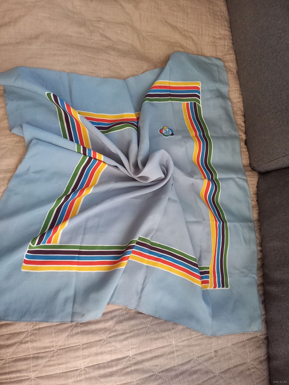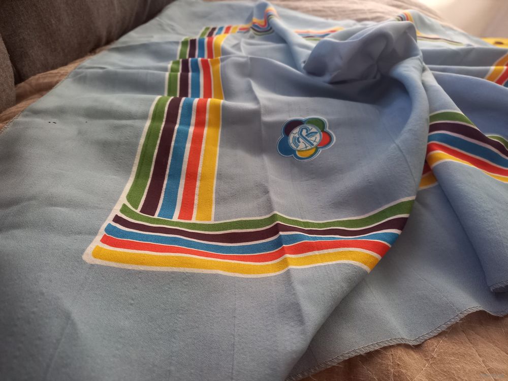 Платок с эмблемой "Всемирного фестиваля молодёжи и студентов» СССР. Размер 83 х 83 см.