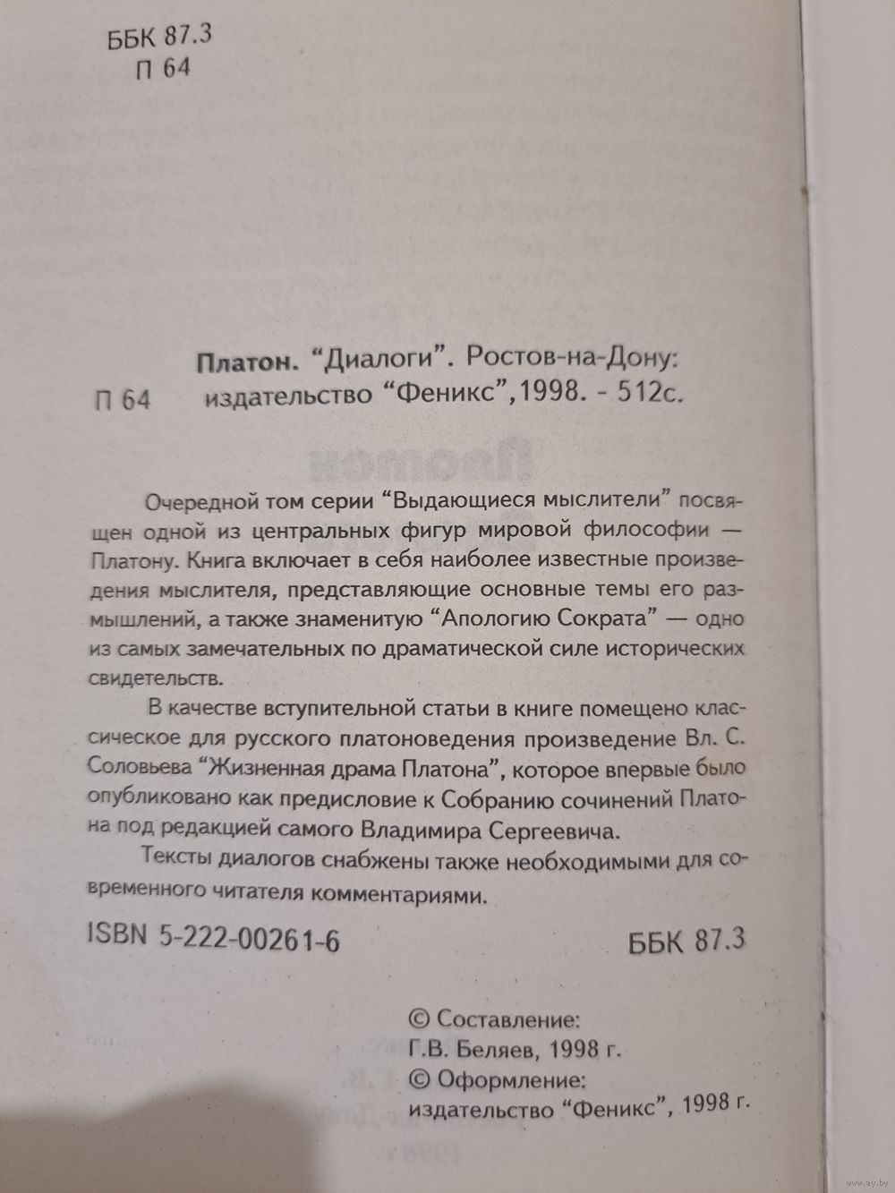 Платон Диалоги 1998 г