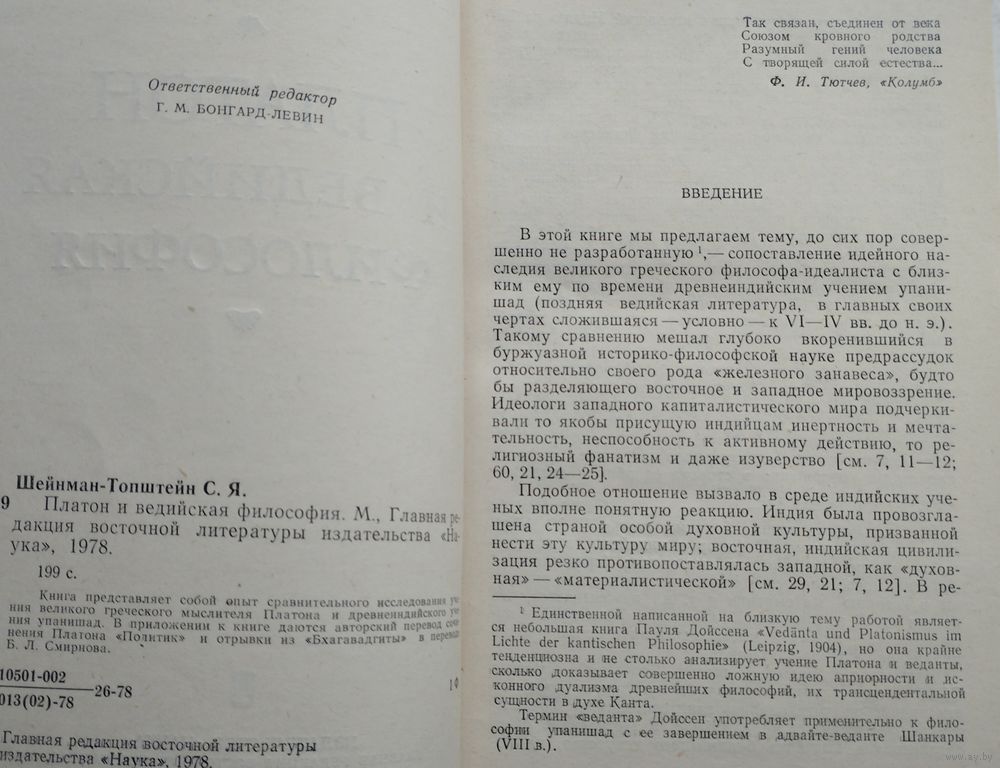 Тираж 10000 экз. 200 стр. Книга представляет собой опыт сравнительного исследования великого греческого мыслителя Платона и древнеиндийского учения упанишад.