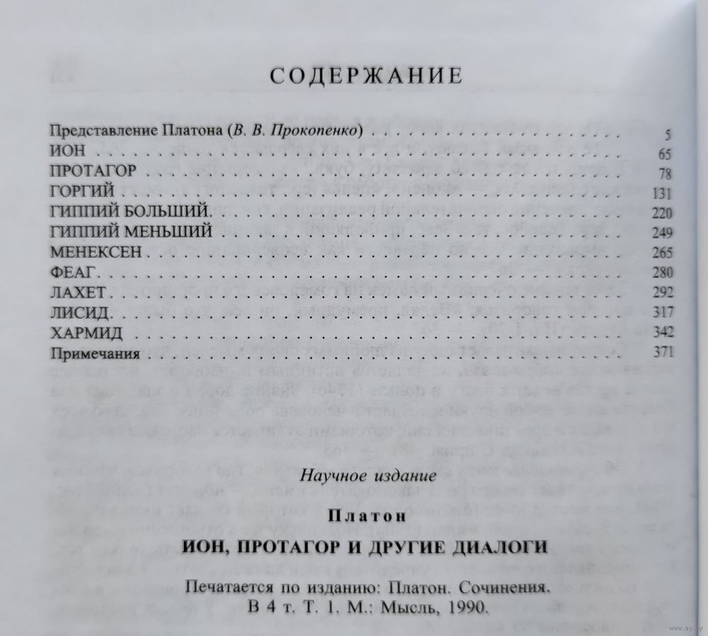 Платон. Ион, Протагор и другие диалоги. Серия : Слово о сущем. Том 85. Ответственный редактор и составитель проф. Я.А. Слинин. СПб.: Наука, 2014 г., 432 с., портрет. Твёрдый переплёт, ляссе, чуть увеличенный формат.