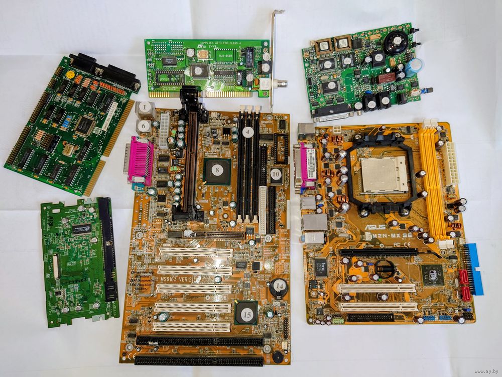 Материнки MS6163 (N1996); Asus M2N-MX SE - работоспособность не известна, есть вздутые конденсаторы.