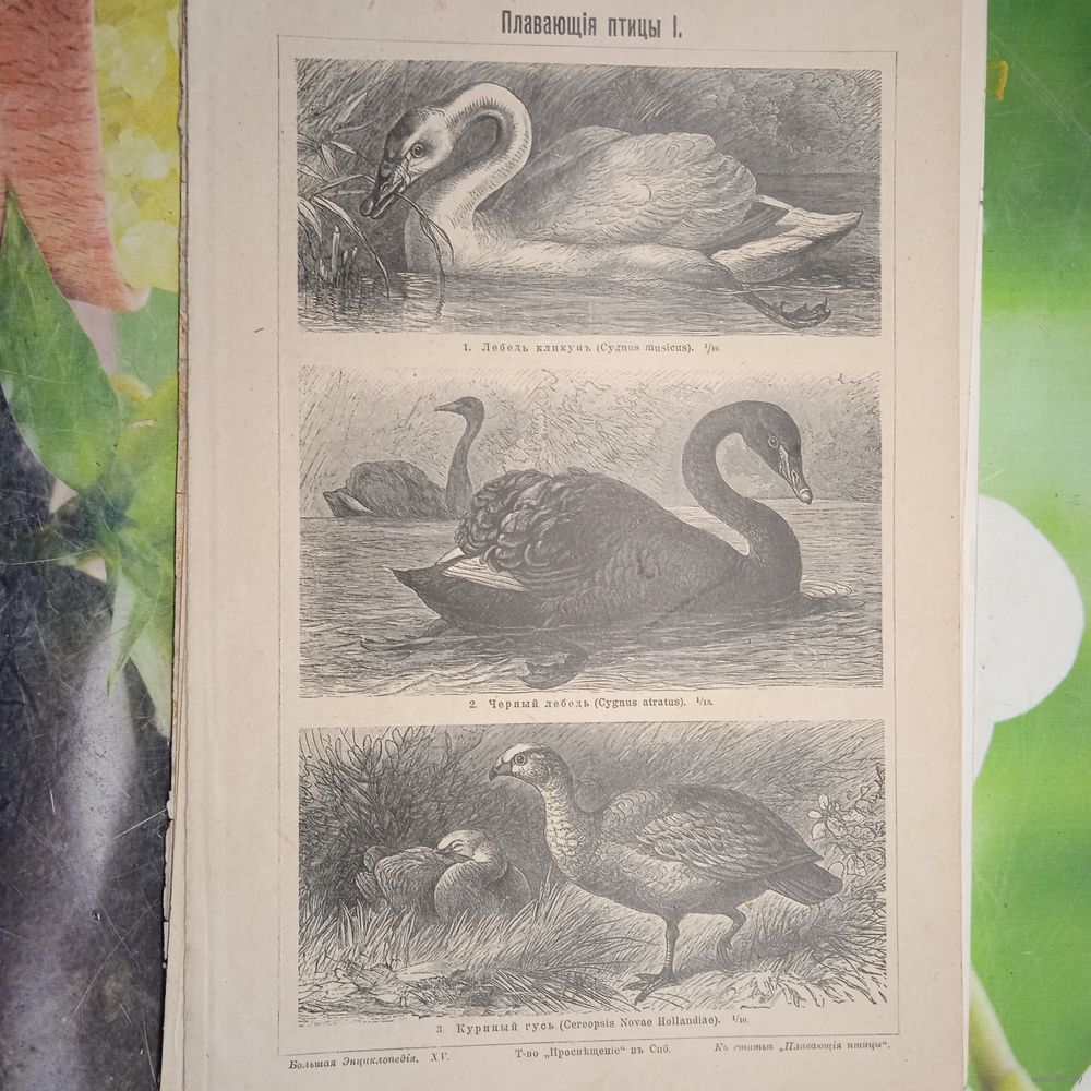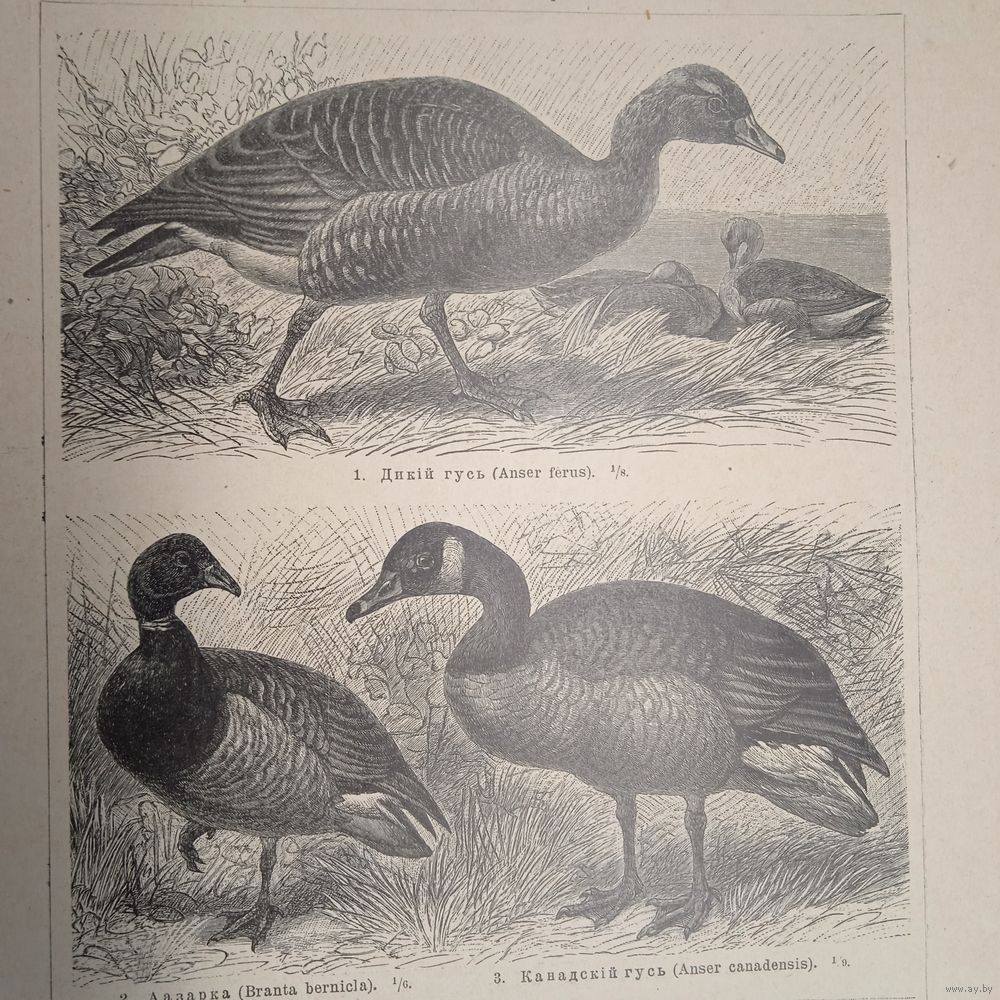 Плавающия птицы. 1. 2. Энциклопедическая гравюра СПБ конец 19века 24х16см.