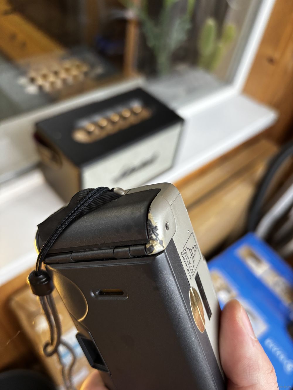 Фотоаппарат не включается, скорее всего окислились контакты питания. Внутри заряжена пленка Kodak. Состояние на фото