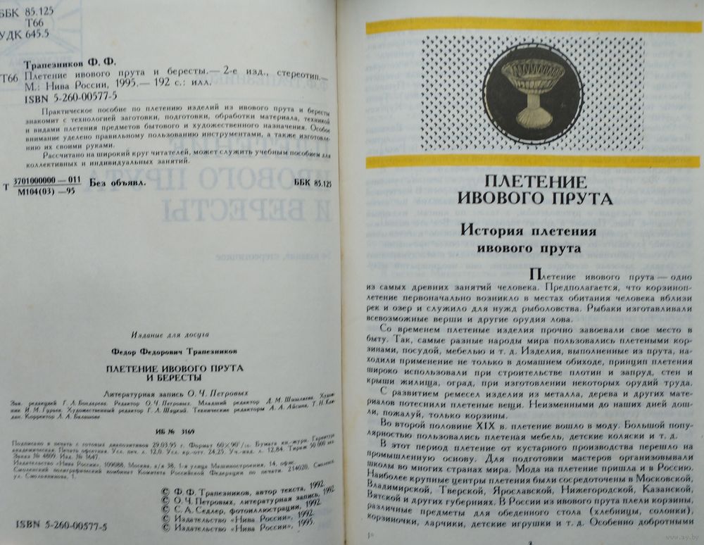 Большой формат. Практическое пособие по плетению изделий из ивового прута и бересты знакомит с технологией заготовки, подготовки, обработки материала, техникой и видами плетения бытового и художественного назначения....