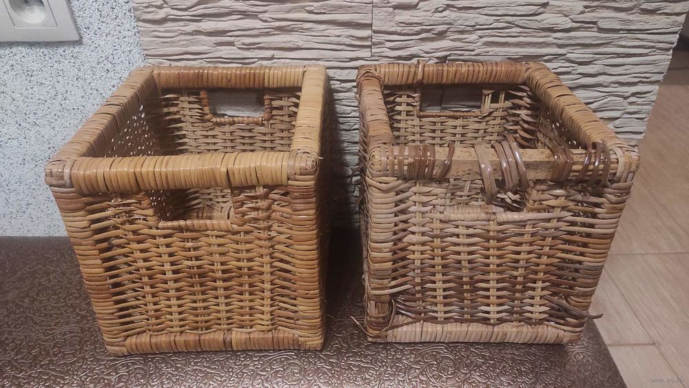 Плетеный короб 2 шт. в наличии. Один в отличном состоянии, другой чуть хуже, расплелись ручки, можно легко подправить. Очень прочные, добротные, размер 25 на 23 см, высота 23 см. Продаю только парой. Без торга.