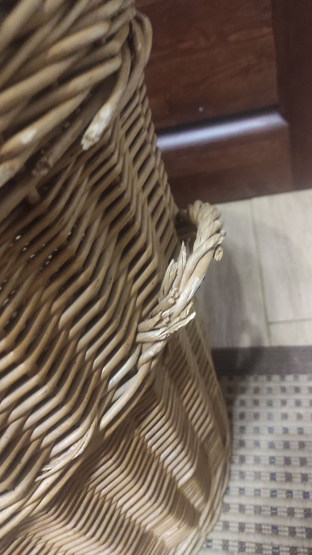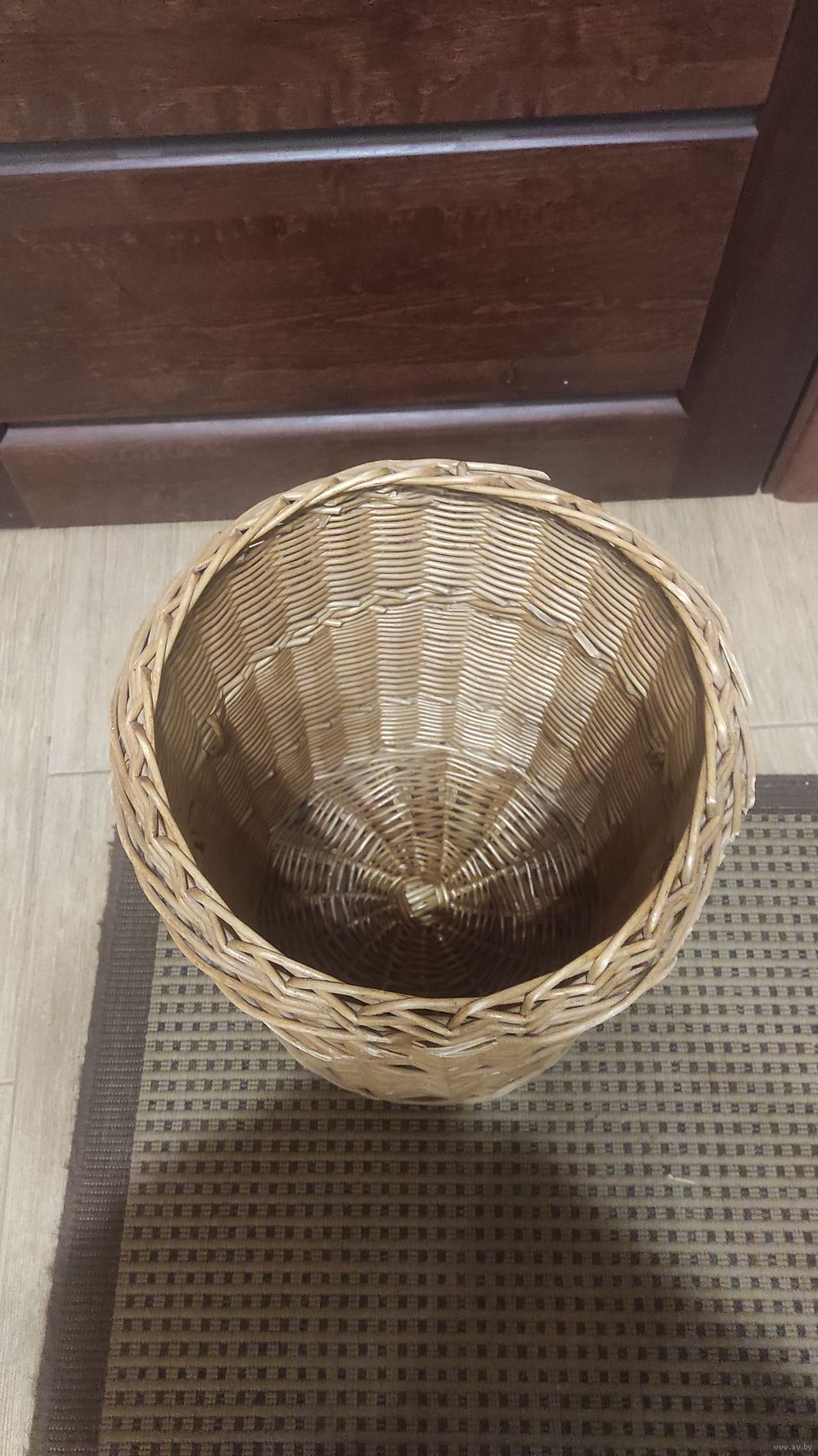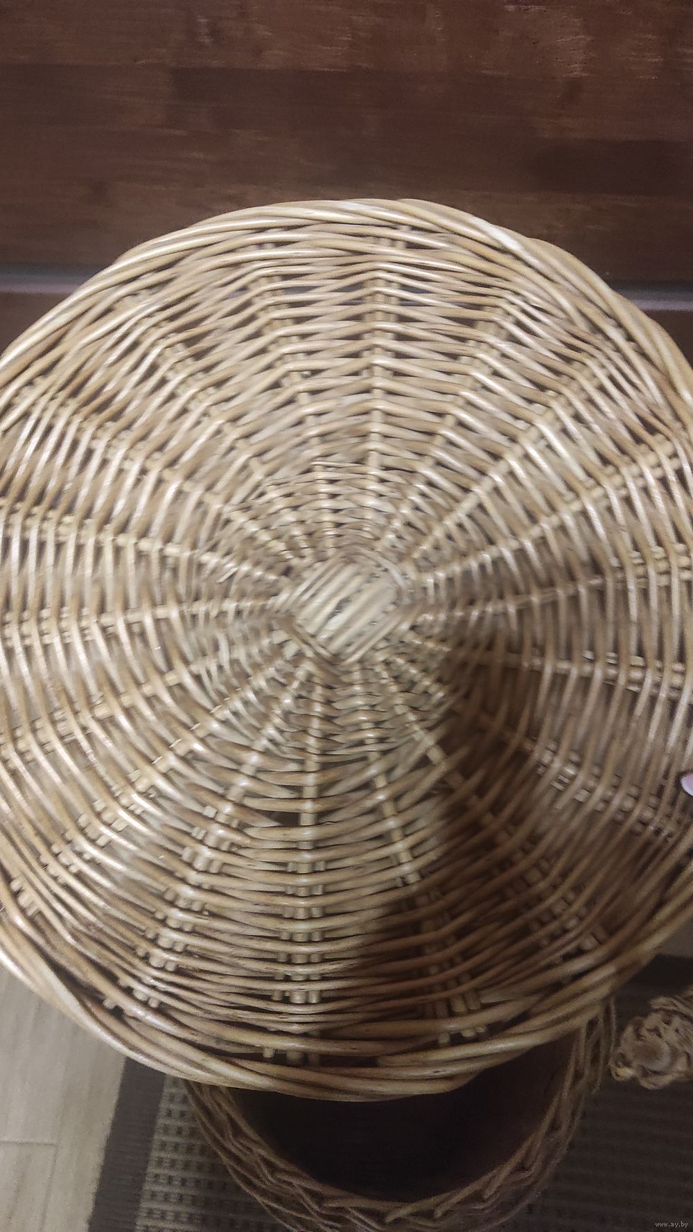 Плетеный короб с крышкой, добротный, большой. Высота 46 см, диаметр 38 см. Сам короб целый, добротный, немного расплелся на ручки и на крышке. В общем очень хороший короб.