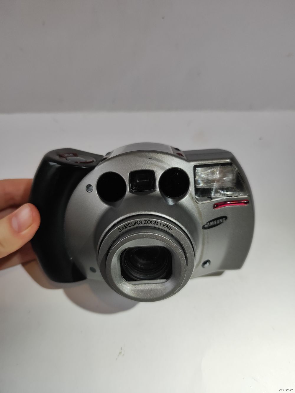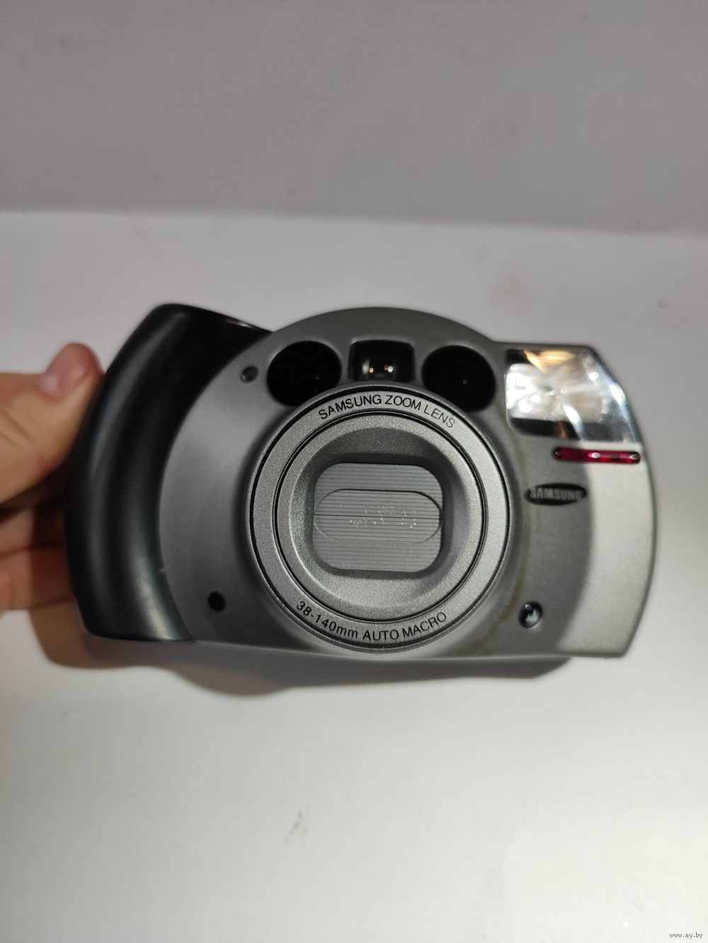 Подаёт признаки жизни. Съёмку не производит(возможно должна быть установлена плёнка?). Загорается инфо экран, выдвигается объектив на 38 мм, (зум 38-140 мм, работает на увеличение -обратно только при выключении режима-сломана кнопка).Срабатывает моторчик перемотки - но насколько корректно работает фотоаппарат и настройки не известно! (батарейки 2-е шт. по 3 вольта). Крышечка объектива при выключении автоматически закрывается и объектив полностью задвигается. Состояние на фото.(небольшие потёртости,кнопка чуть поцарапана)...