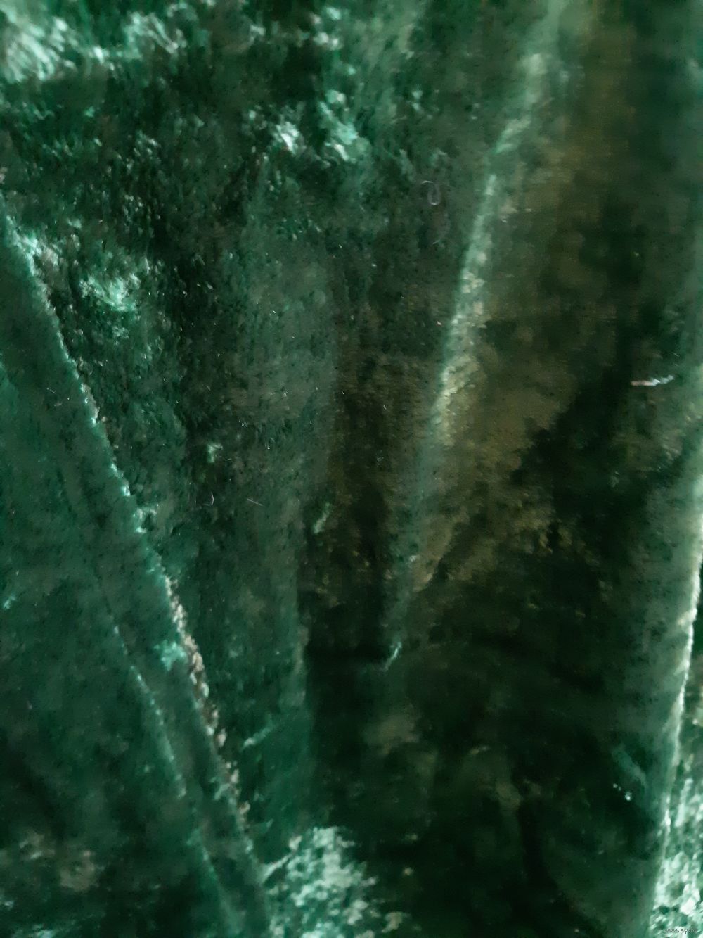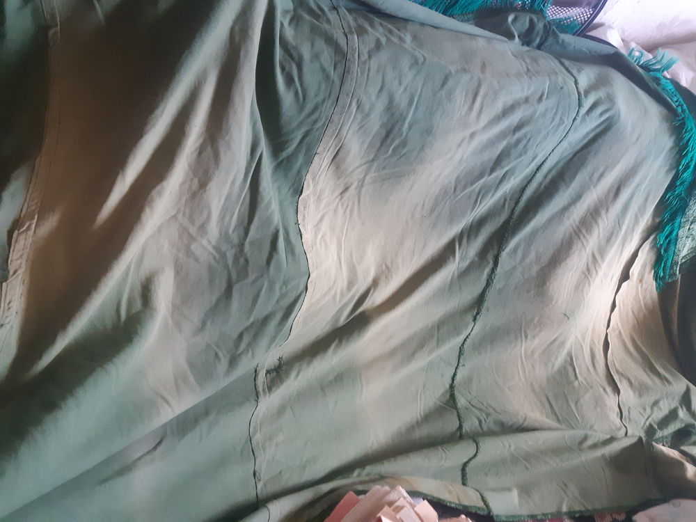 Нюанс смотрите на обратной стороне, есть зашитое место, снаружи не видно. Сшит из отдельных частей, очень сочный невыгоревший темно-зеленый цвет.